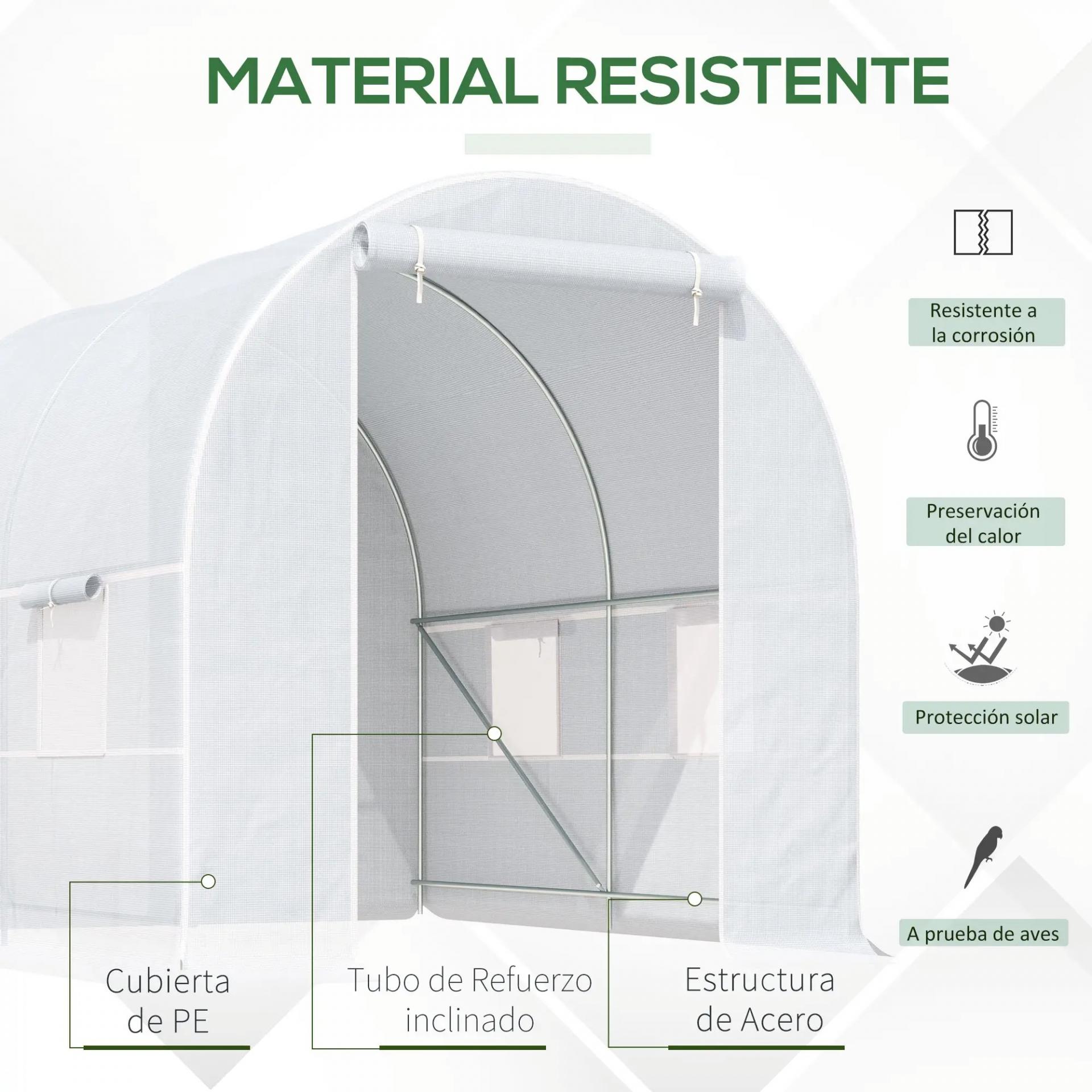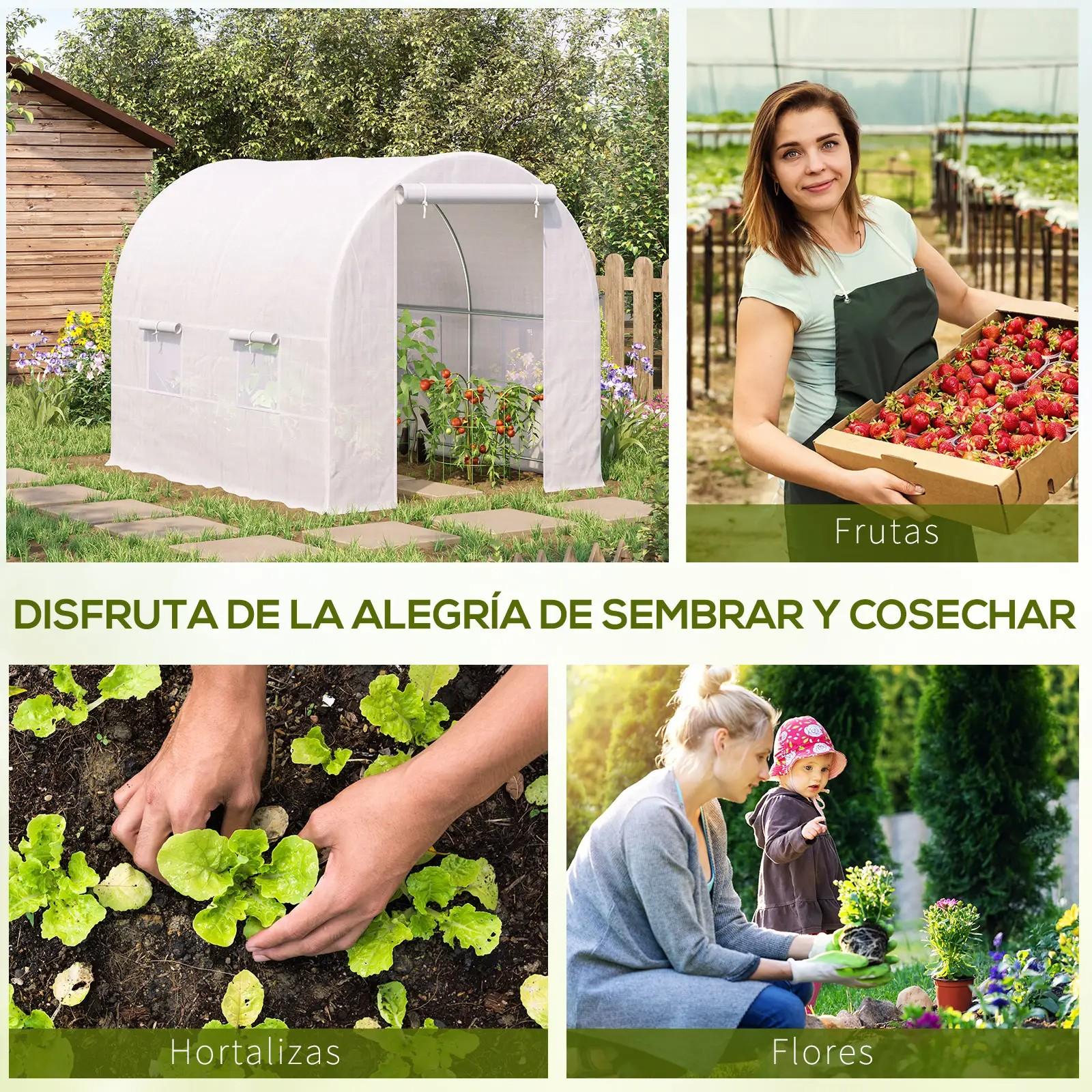 - INVERNADERO DE GRAN TAMAÑO: Invernadero de exterior ideal para proteger tanto huertos como flores ornamentales. Cuenta con una cubierta de PE, resistente a los rayos UV y al paso del tiempo para proteger todos tus cultivos de las inclemencias del tiempo y el frío