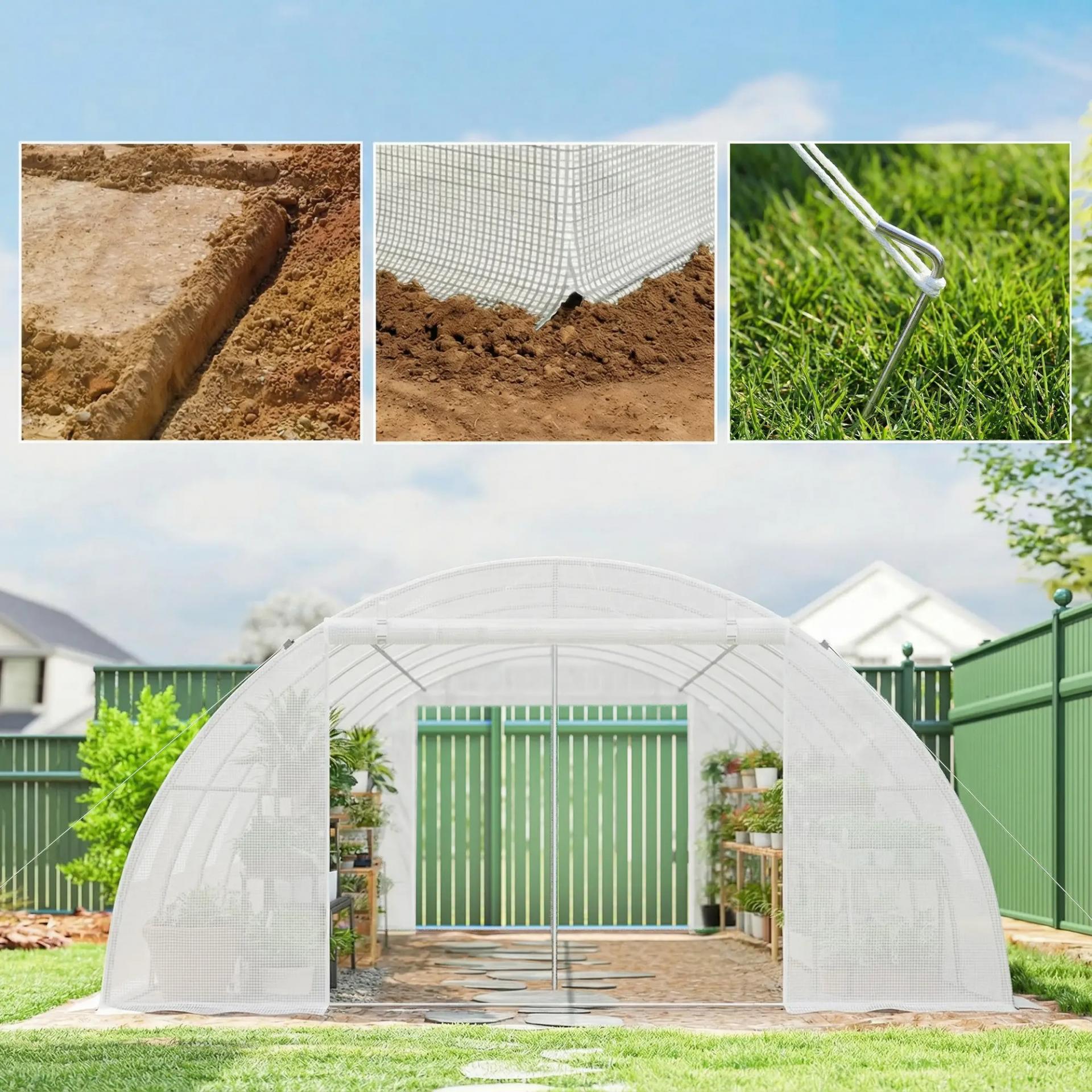 - ESTRUCTURA REFORZADA: Marco de acero galvanizado con postes diagonales y dos barras desmontables que refuerzan el conjunto. El invernadero de túnel te ofrece una estructura más firme y estable para proteger tus cultivos durante todo el año