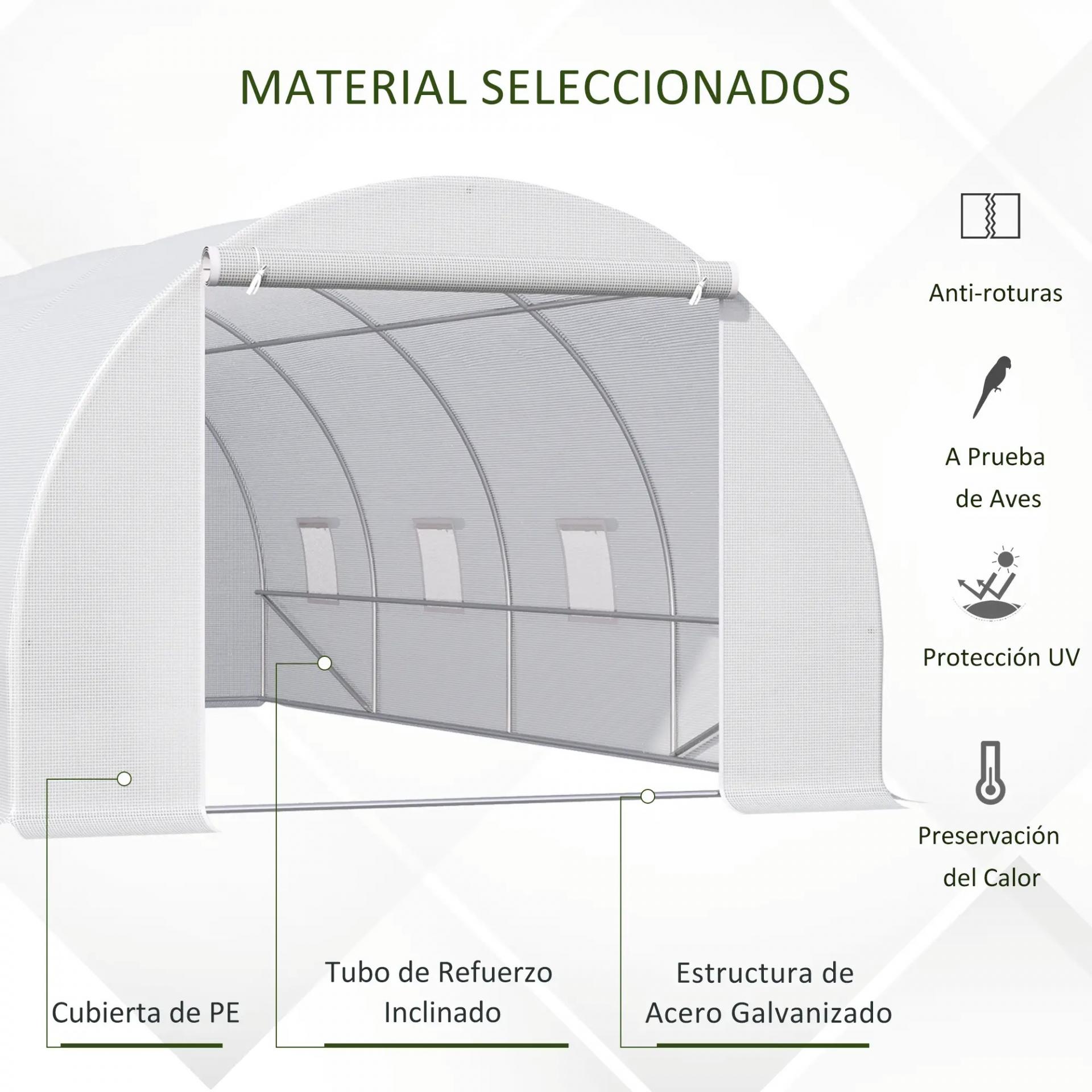 - INVERNADERO DE TÚNEL: Invernadero grande que proporciona las condiciones de necesarias para el desarrollo y crecimiento de tus plantas y cosecha. Protege a las plantas del frío y las aves. Adecuado para el cultivo de plantas tropicales, verduras, frutas, flores, etc.