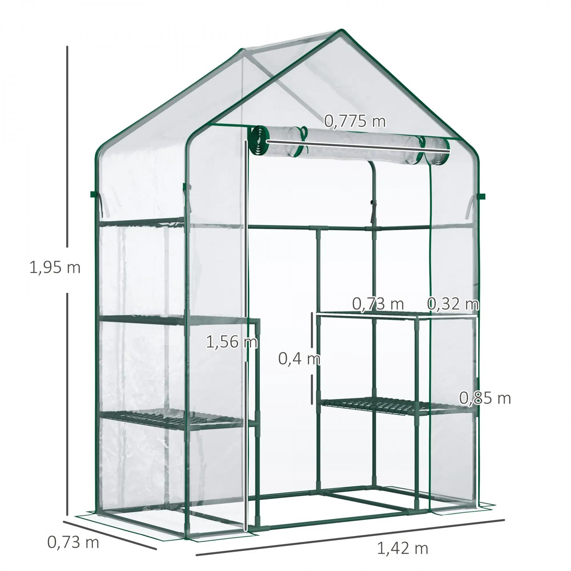 Invernadero de Jardín con 4 Estantes 1 Puerta con Cremallera para Cultivo de Plantas Flores 142x73x195 cm Verde