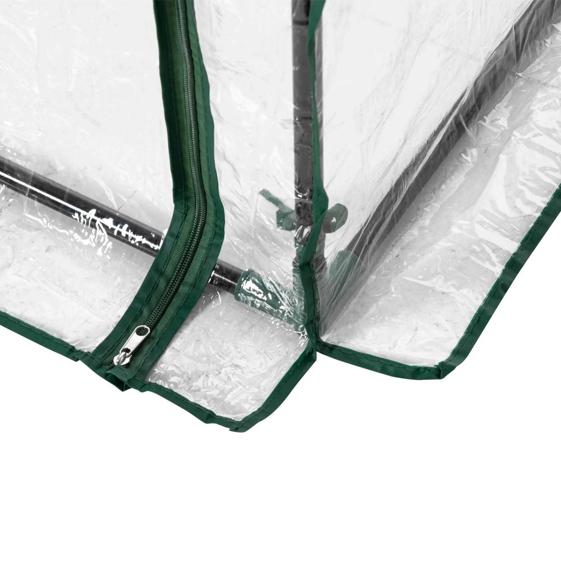 - - CUBIERTA DE PE CON BORDES EXTENDIDOS: La cubierta de plástico protege el interior del viento y la lluvia ligera y los rayos UV a la vez que deja pasar la luz para que tus plantas puedan realizar sus funciones. Tiene bordes extendidos de 10 cm que deben ser enterrados en el suelo para ofrecer mayor estabilidad al invernadero resistente