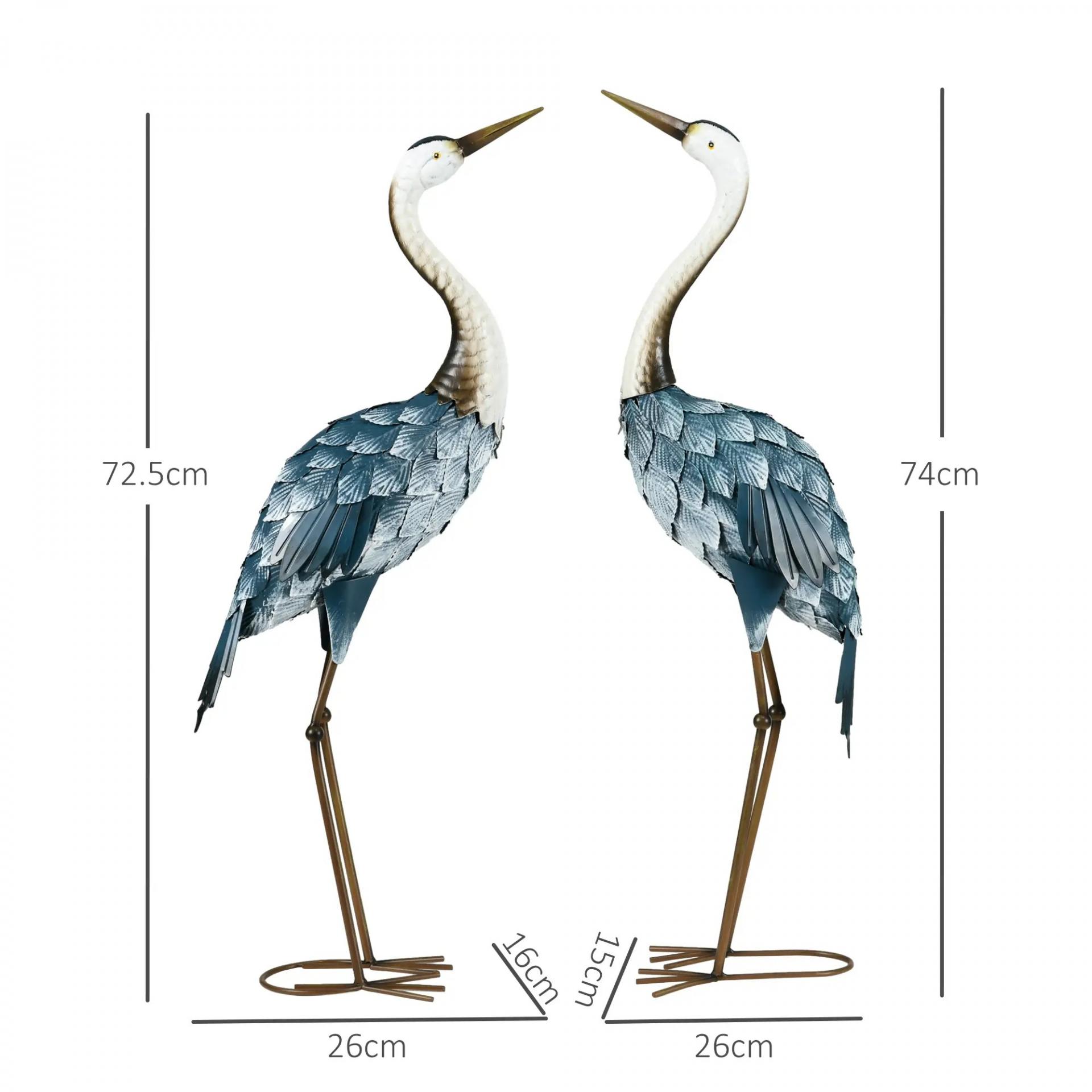 Set de 2 Estatuas de Grulla de Acero para Jardín con Pintura Resistente y Estacas de Suelo para Decoración de Césped