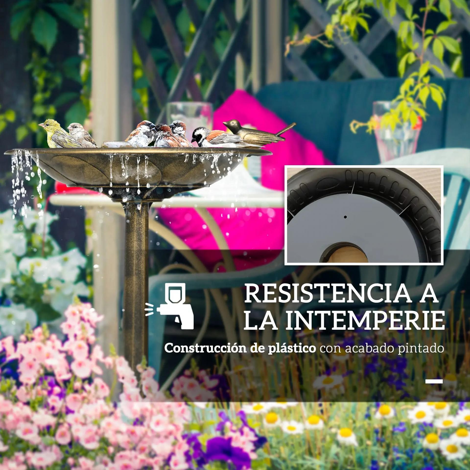 Baño para Pájaros de Jardín Exterior con 2 Niveles Recipientes para Agua y Comida Diseño Retro y Elegante Bronce