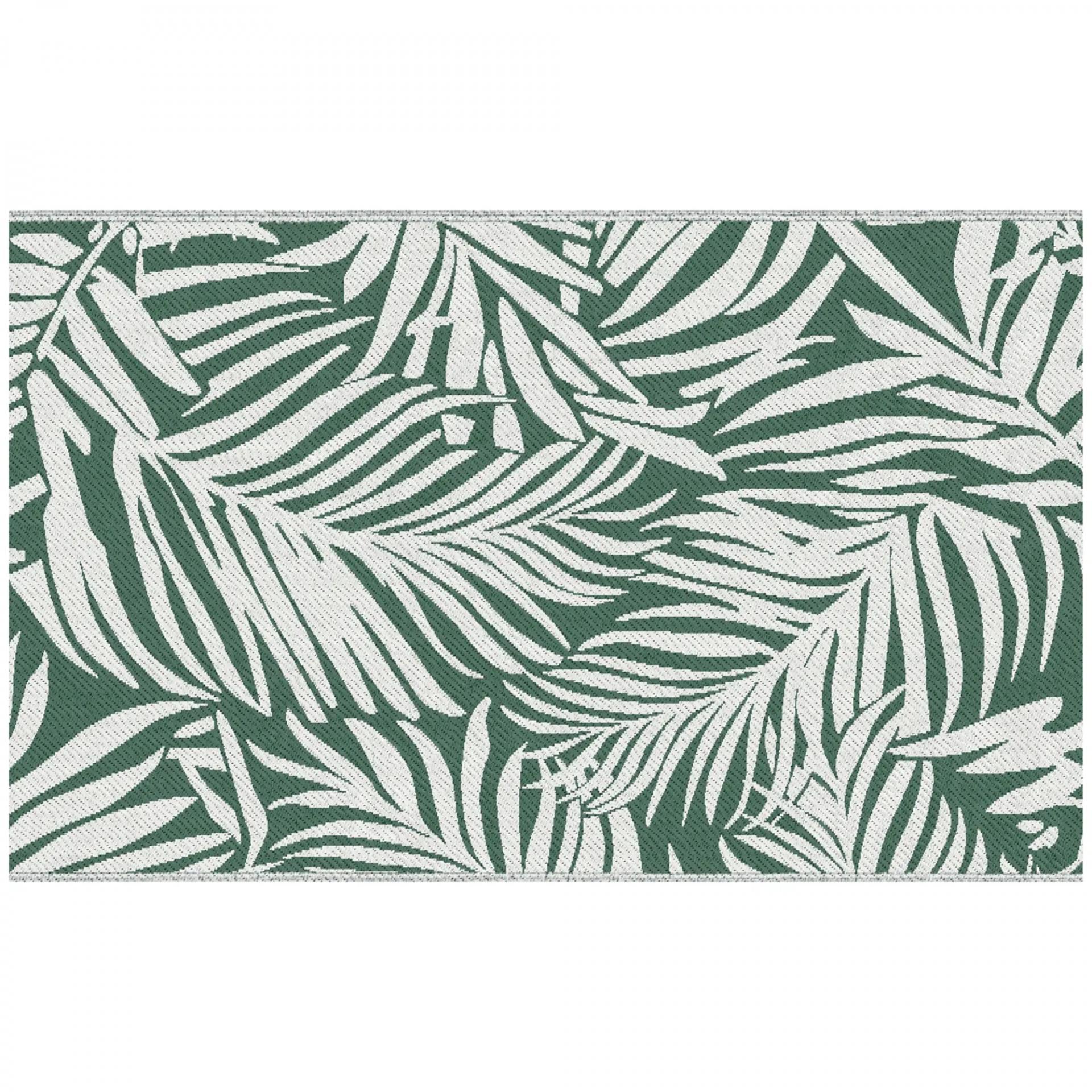 Alfombra Reversible 152x243 cm con Patrón de Hojas para Terraza Balcón Patio Camping Playa Verde Oscuro y Blanco