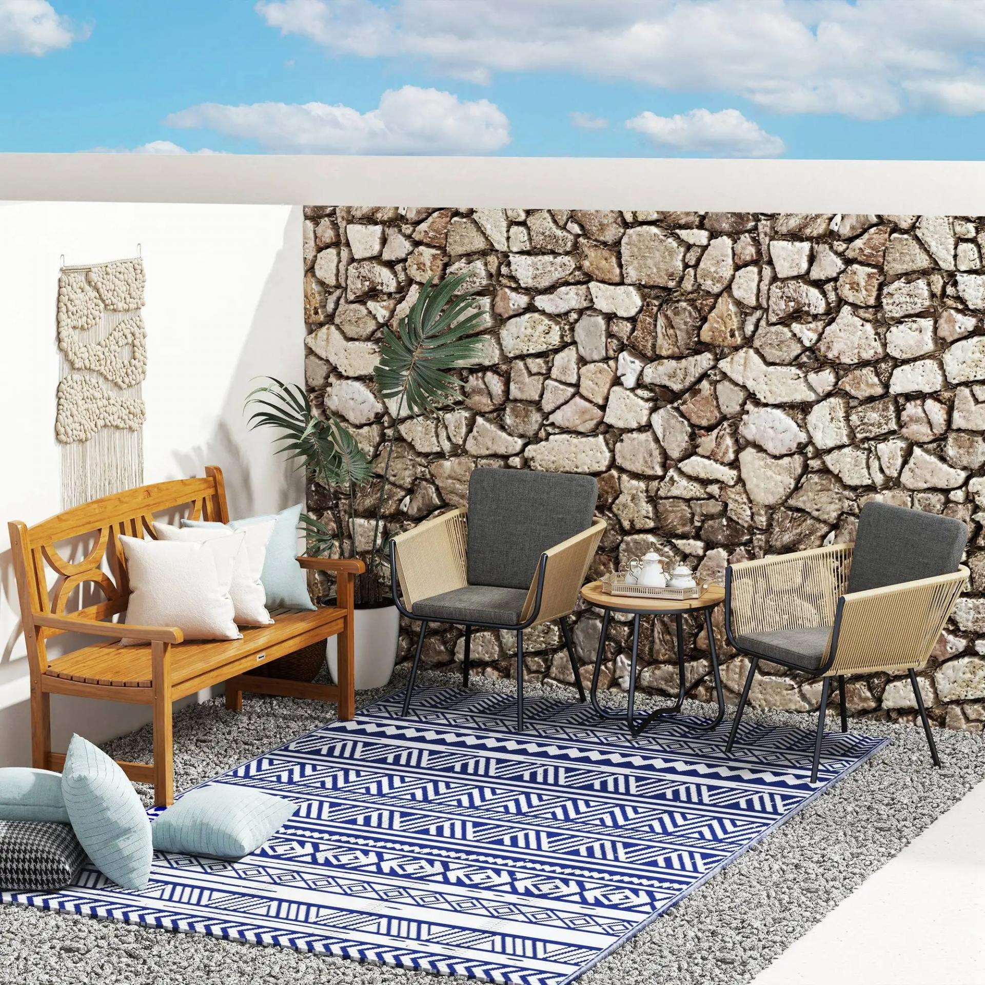 Alfombra Reversible 182x274 cm Estilo Moderno para Terraza Balcón Patio Camping Playa Azul Oscuro y Blanco