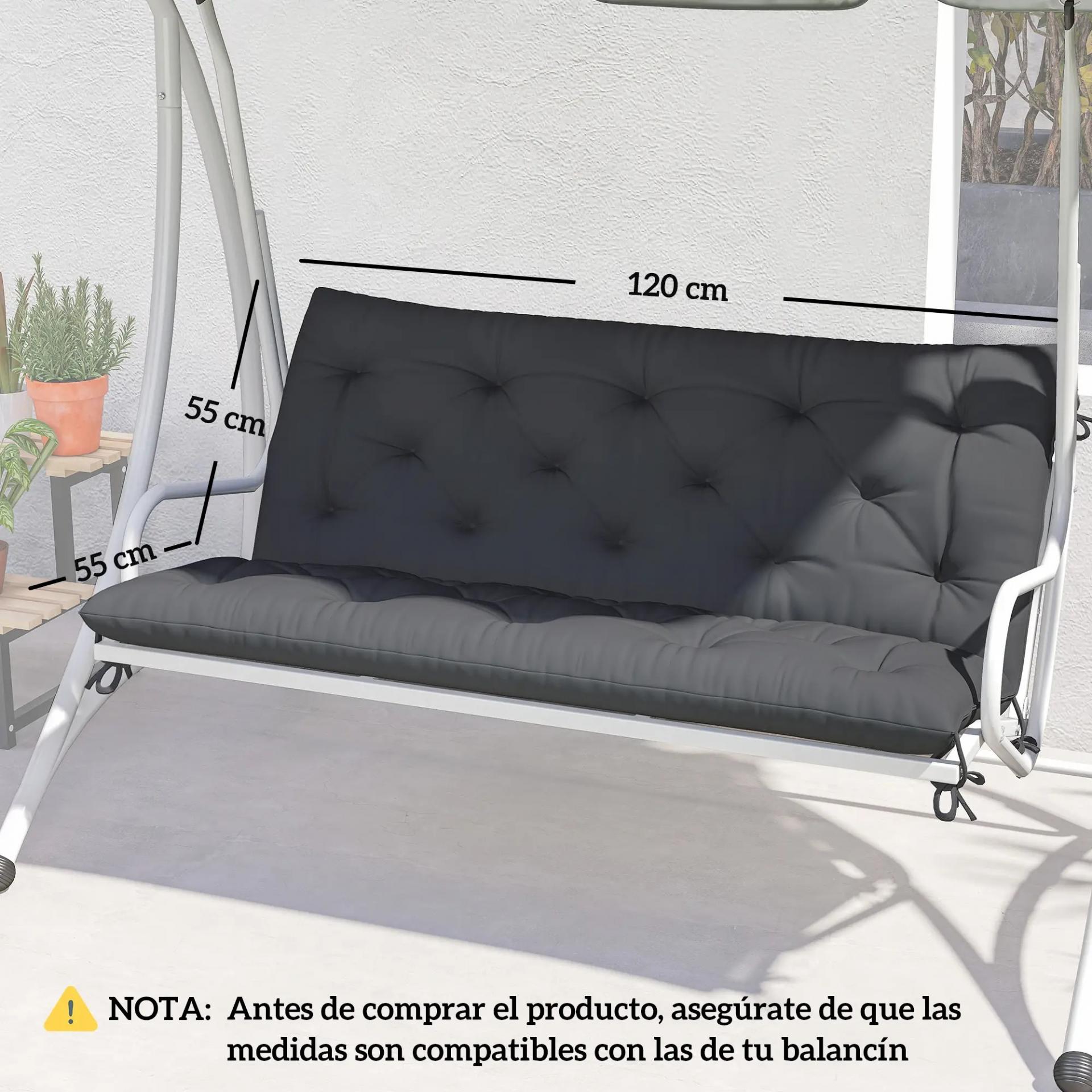 Cojín para Banco de Jardín o para Balancín de Jardín 120x110x12 cm de 2 Plazas con 6 Cordones de Fijación Negro