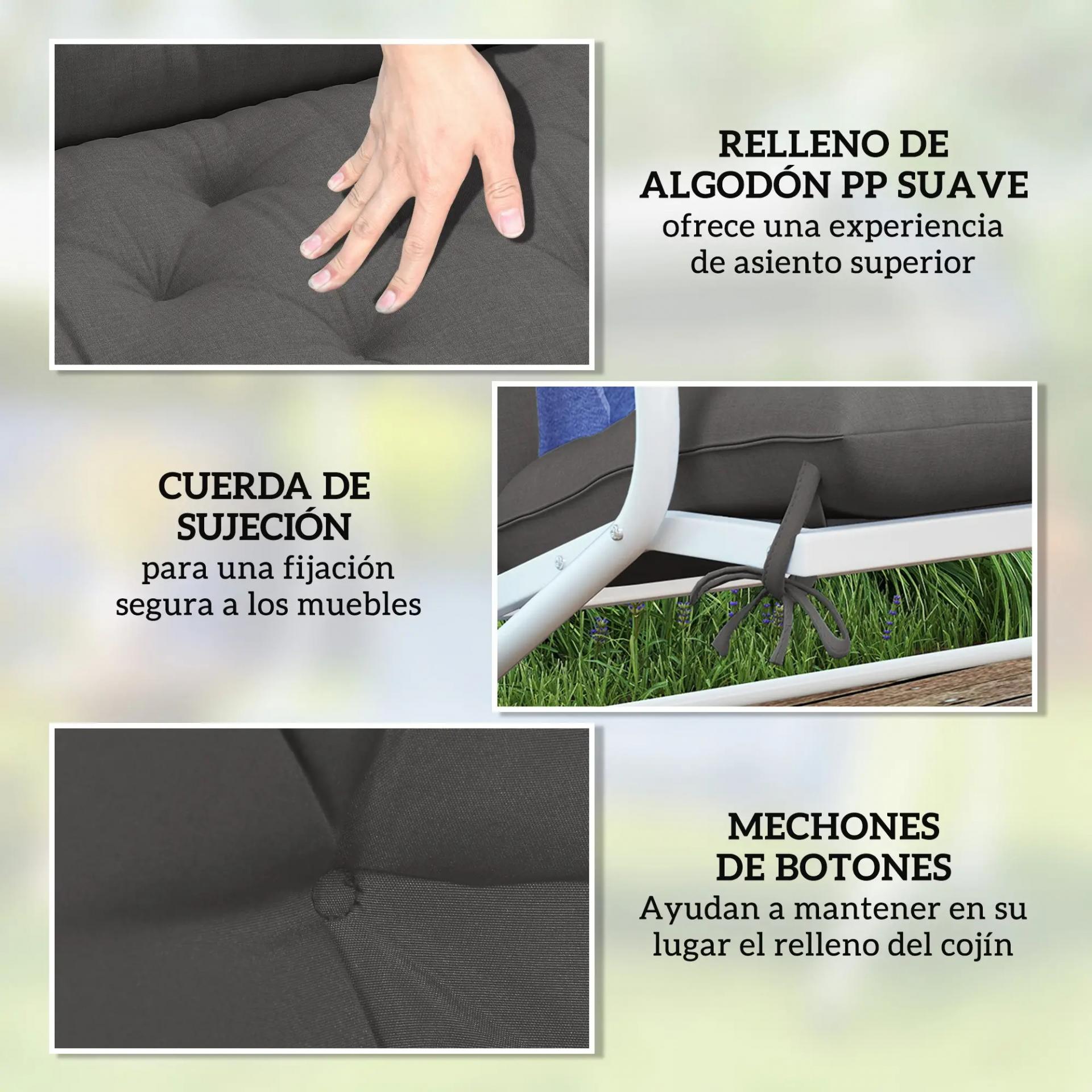 - - 6 CINTAS DE SUJECIÓN: Este cojín de jardín para exterior está equipado con 6 cintas para que puedas atarlo fácilmente a la estructura de tu banco, evitando que resbale al sentarte. Cuenta con cintas en las 4 esquinas y en ambos lados del pliegue