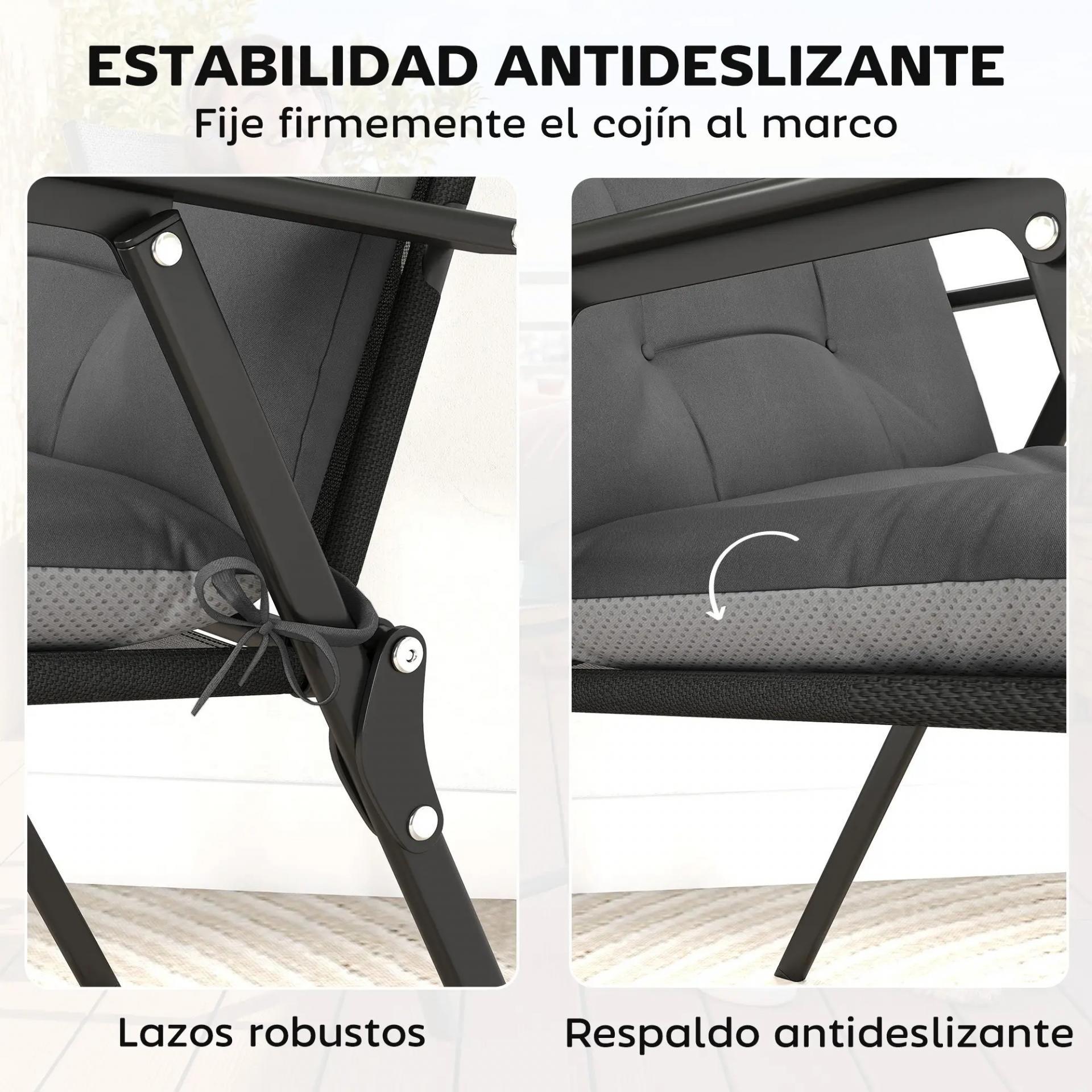 Set de 4 Cojines para Sillas de Jardín Impermeables y Antideslizantes con Respaldo Correas 112x53 cm Gris Oscuro
