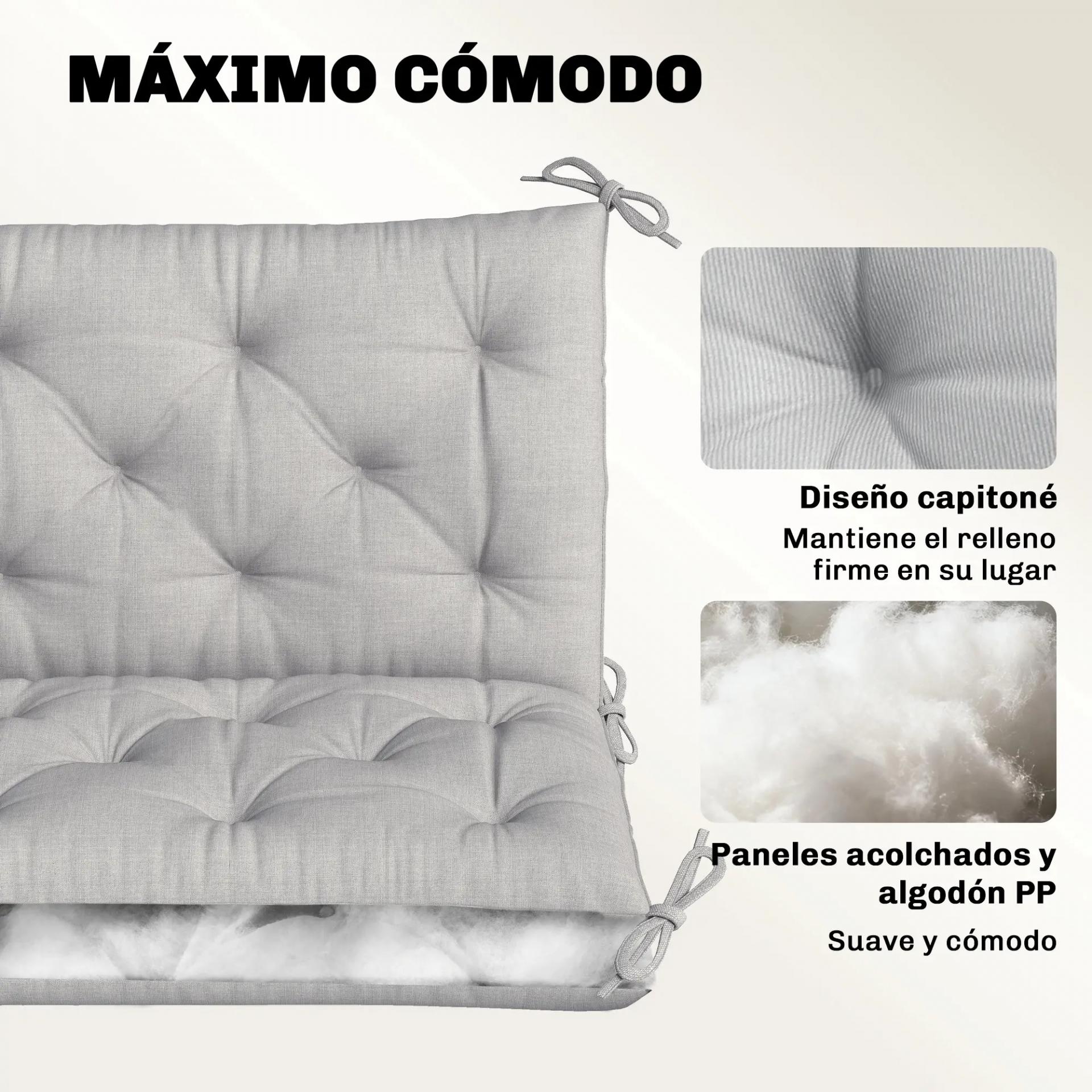 Cojín para Banco de Jardín con Respaldo Relleno Grueso y Cintas de Sujeción para Interior y Exterior 150x98x8 cm Gris