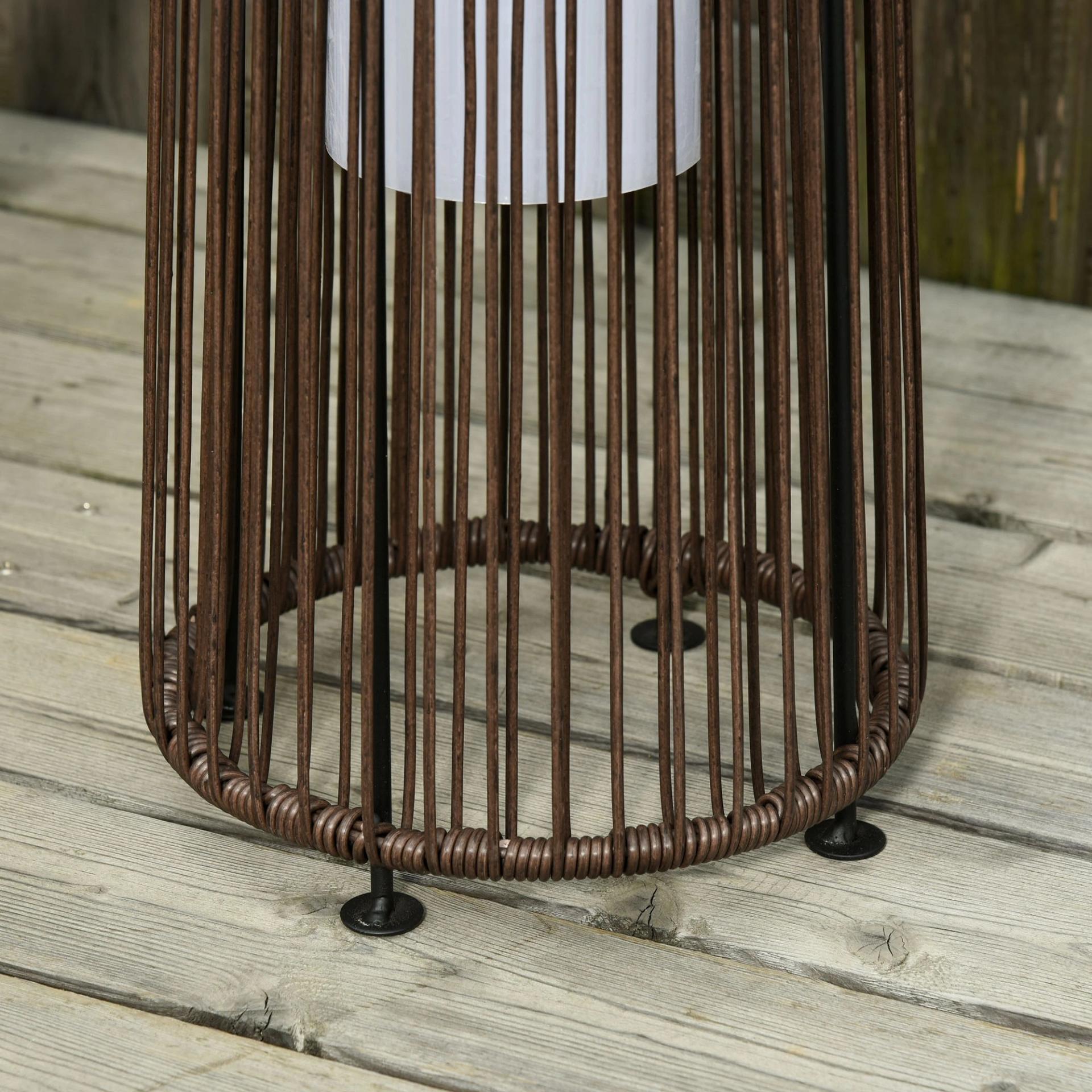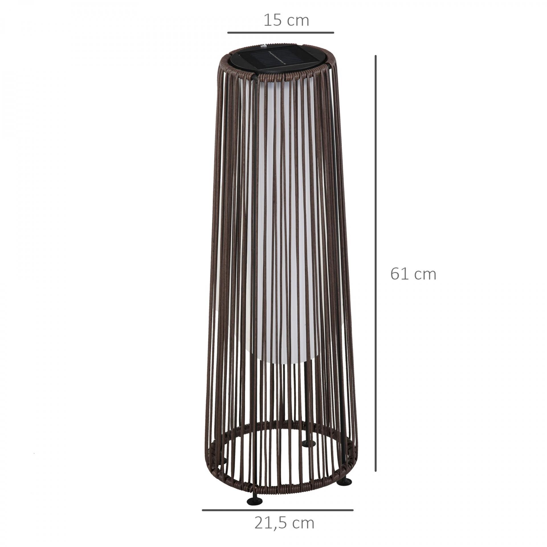 Linterna de Jardín de Ratán Sintético Farola Solar Exterior con Luces LED Encendido y Apagado Automático Impermeable para Terraza Balcón Patio Ø21,5x61 cm, Marrón