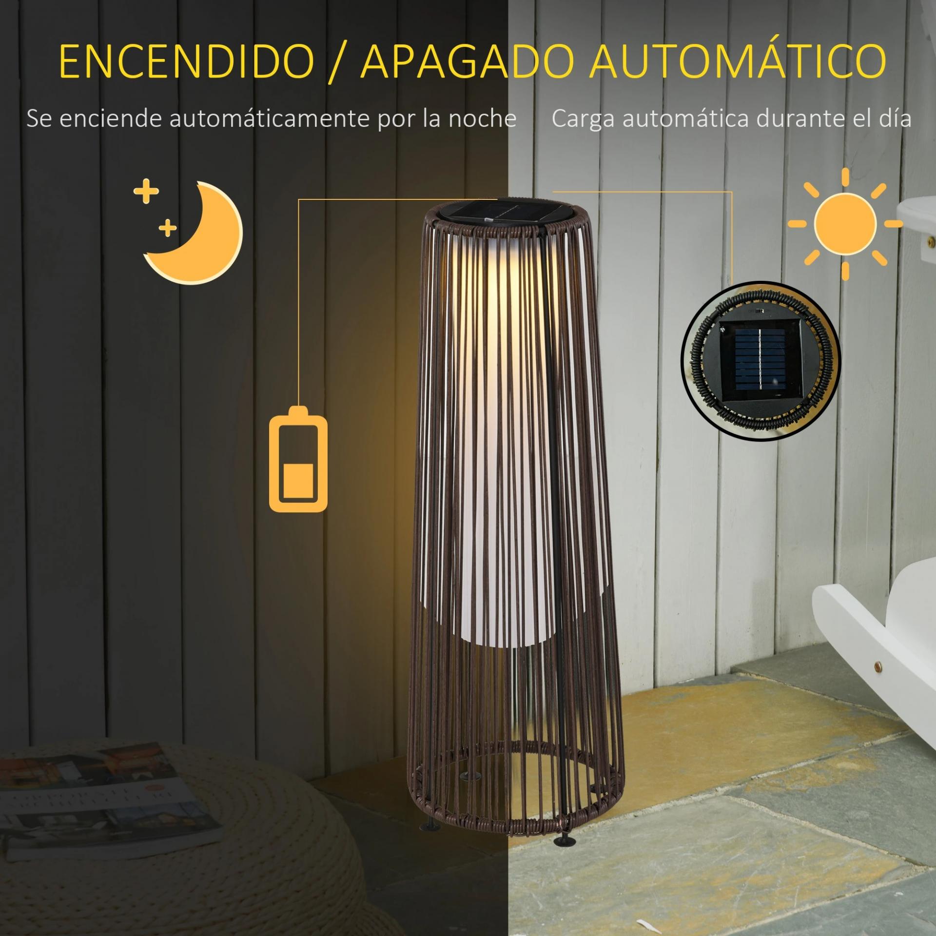 - LÁMPARA DE PIE RATÁN: Perfecta para decorar e iluminar jardines, patios, balcones. Además, como funciona con energía solar, ahorrarás en la factura eléctrica