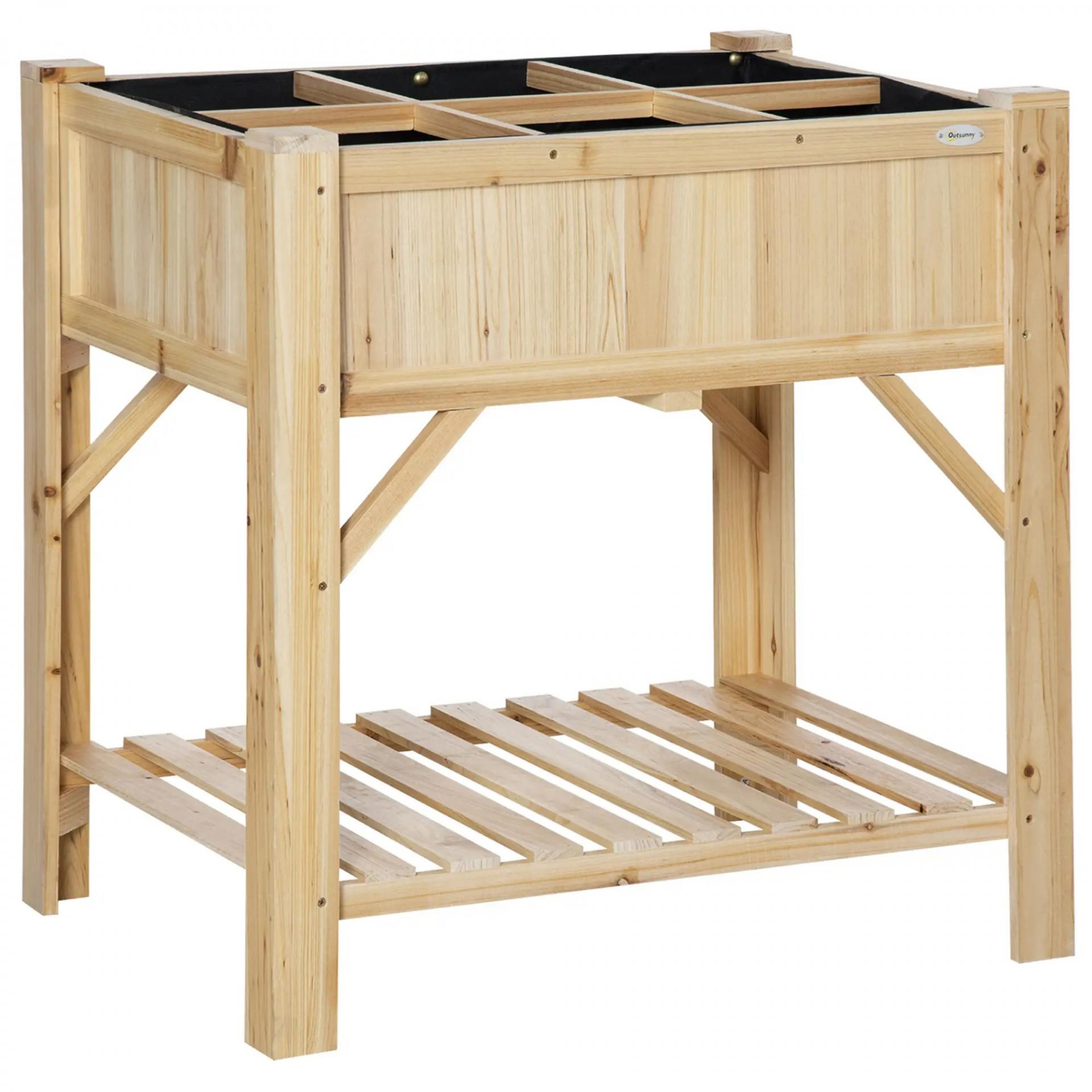 Huerto Urbano de Madera 78,5x58x81 cm Mesa de Cultivo con 6 Compartimentos y Estante Inferior para Plantas Flores en Jardín Terraza Exterior Color Natural