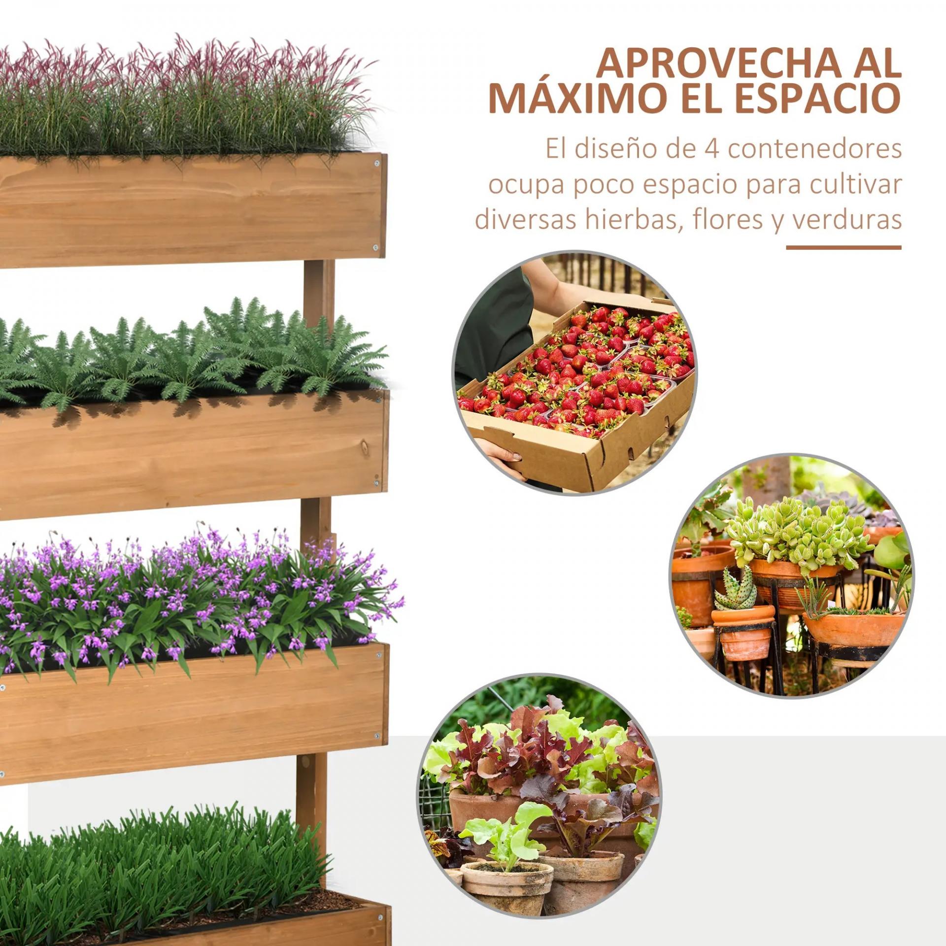 Jardinera de Madera de 4 Niveles Jardinera Elevada Exterior con Orificios de Drenaje 80x45x142 cm Naranja
