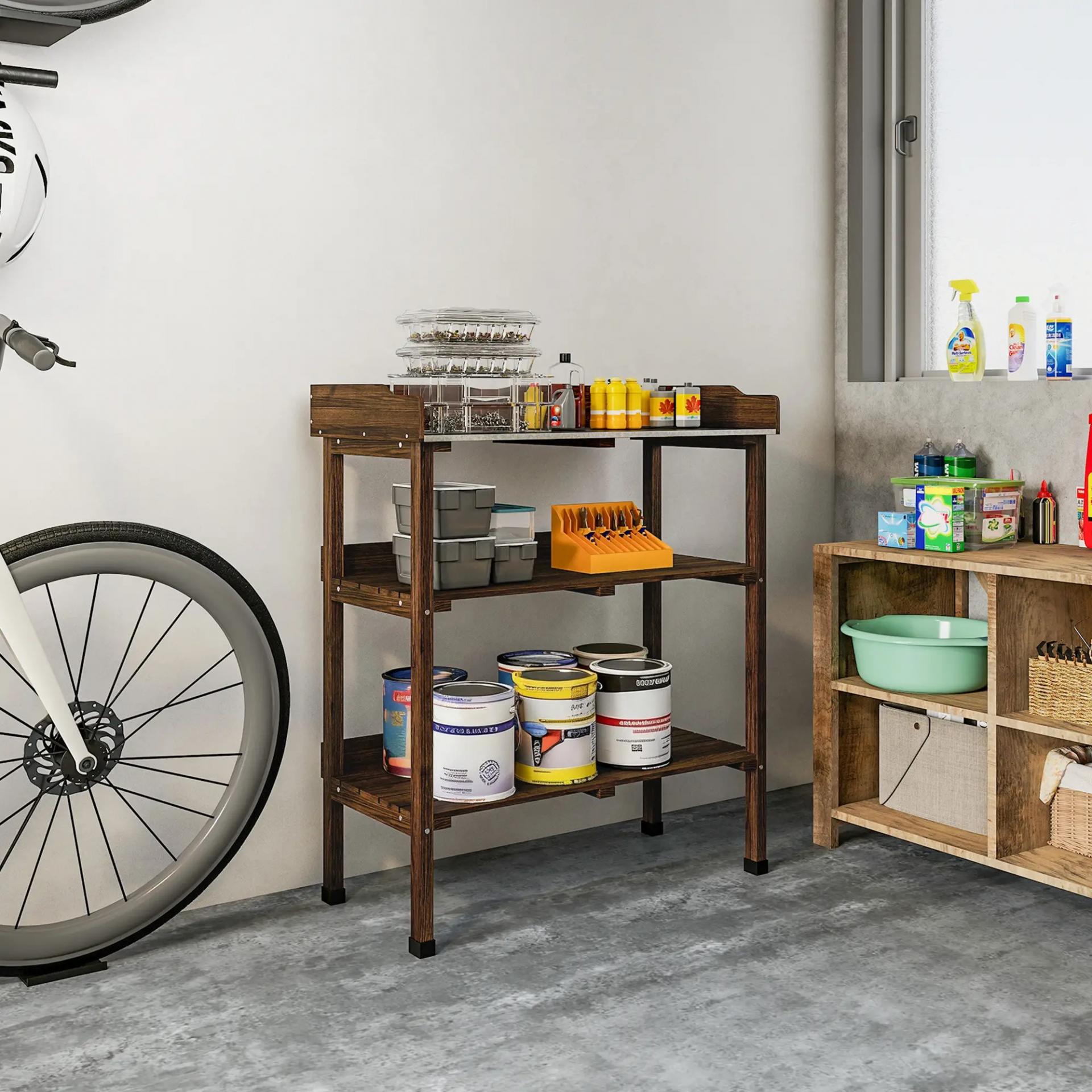 - - AMPLIO ESPACIO DE ALMACENAMIENTO: La mesa de jardinería cuenta con dos estantes inferiores abiertos que ofrecen espacio suficiente para guardar fertilizantes, herramientas y otros accesorios de jardinería