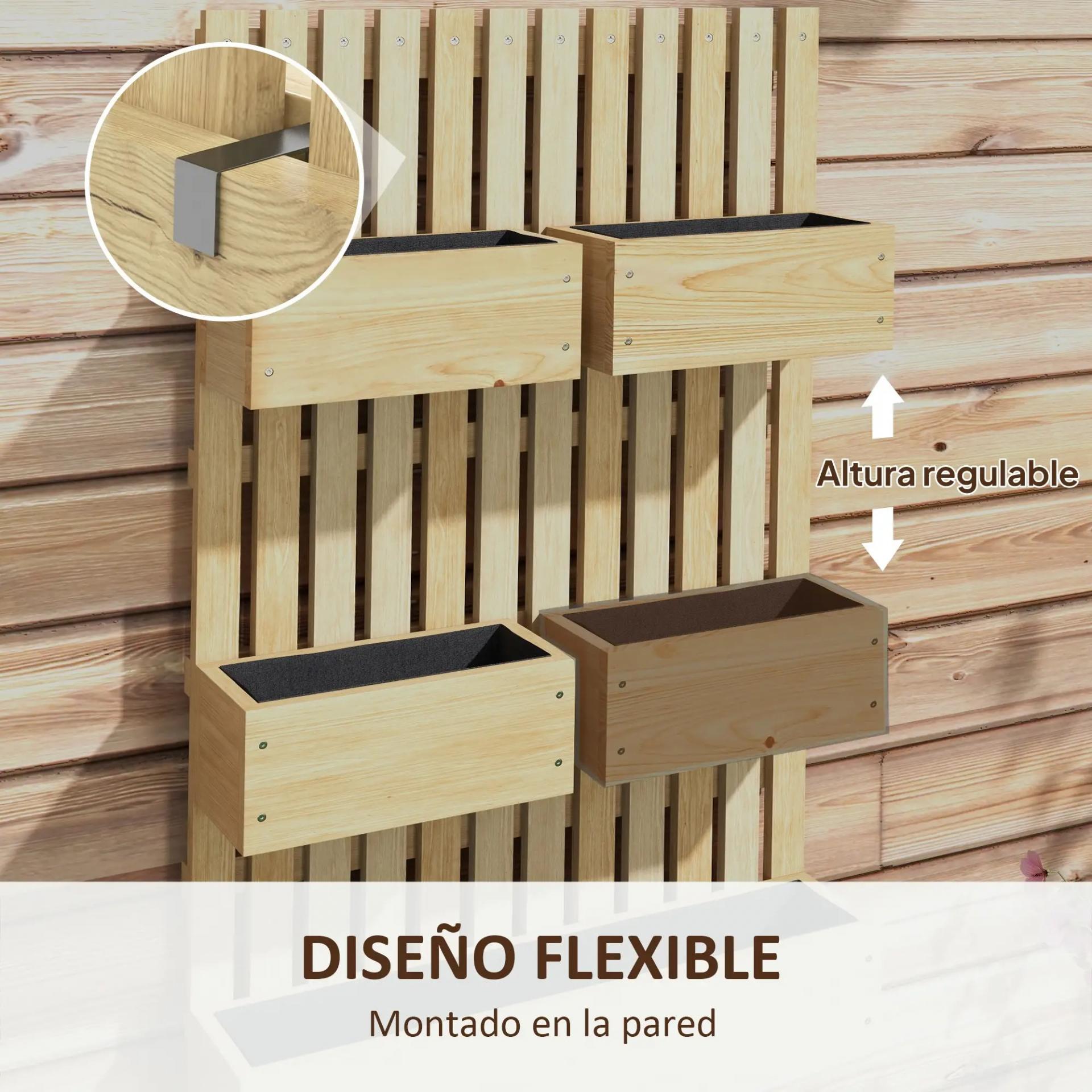 - ELEVADA CON ENREJADO: Las enredaderas y plantas trepadoras pueden crecer fácilmente hasta la parte superior, gracias a los listones de madera. Con un diseño encantador tipo cerca y cinco cajas, nuestro conjunto de jardinera exterior incorpora una pared de enrejado que aporta estabilidad y estilo