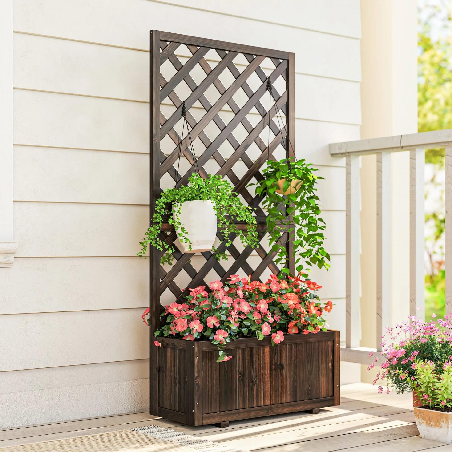 - - JARDINERA CON CELOSÍA: Este macetero de jardín cuenta con una celosía en la parte posterior para que puedas cultivar enredaderas o colgar algunas macetas de flores decorativas o luces para crear un bonito estilo rústico y natural