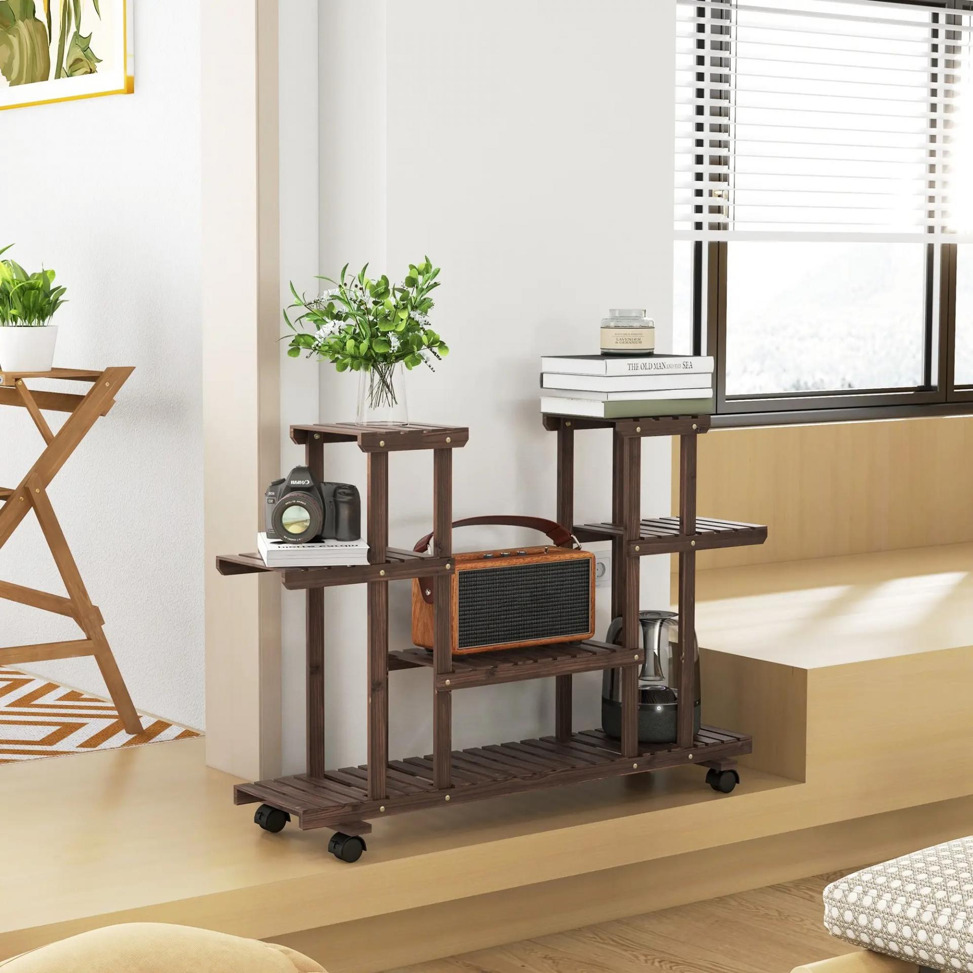 - - FÁCIL DE MOVER: Este estante para plantas se puede mover fácilmente gracias a sus 4 ruedas, 2 de las cuales están equipadas con frenos. Esto significa que puedes cambiar la ubicación de tus plantas según tus necesidades, ya sea para darles más luz solar o para cambiar la decoración de tu espacio