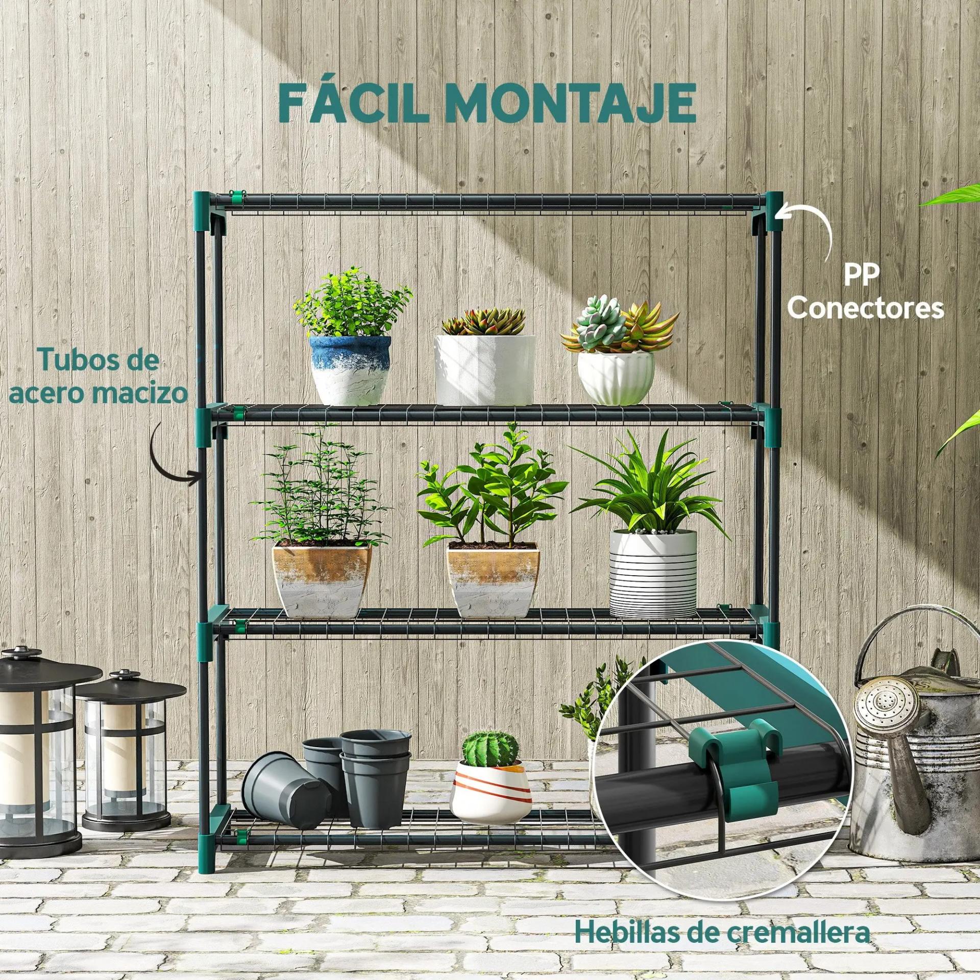 Juego de 2 Soportes para Plantas de 4 Niveles Interior y Exterior Estantes Metálicos con Conectores Fácil Montaje Verde