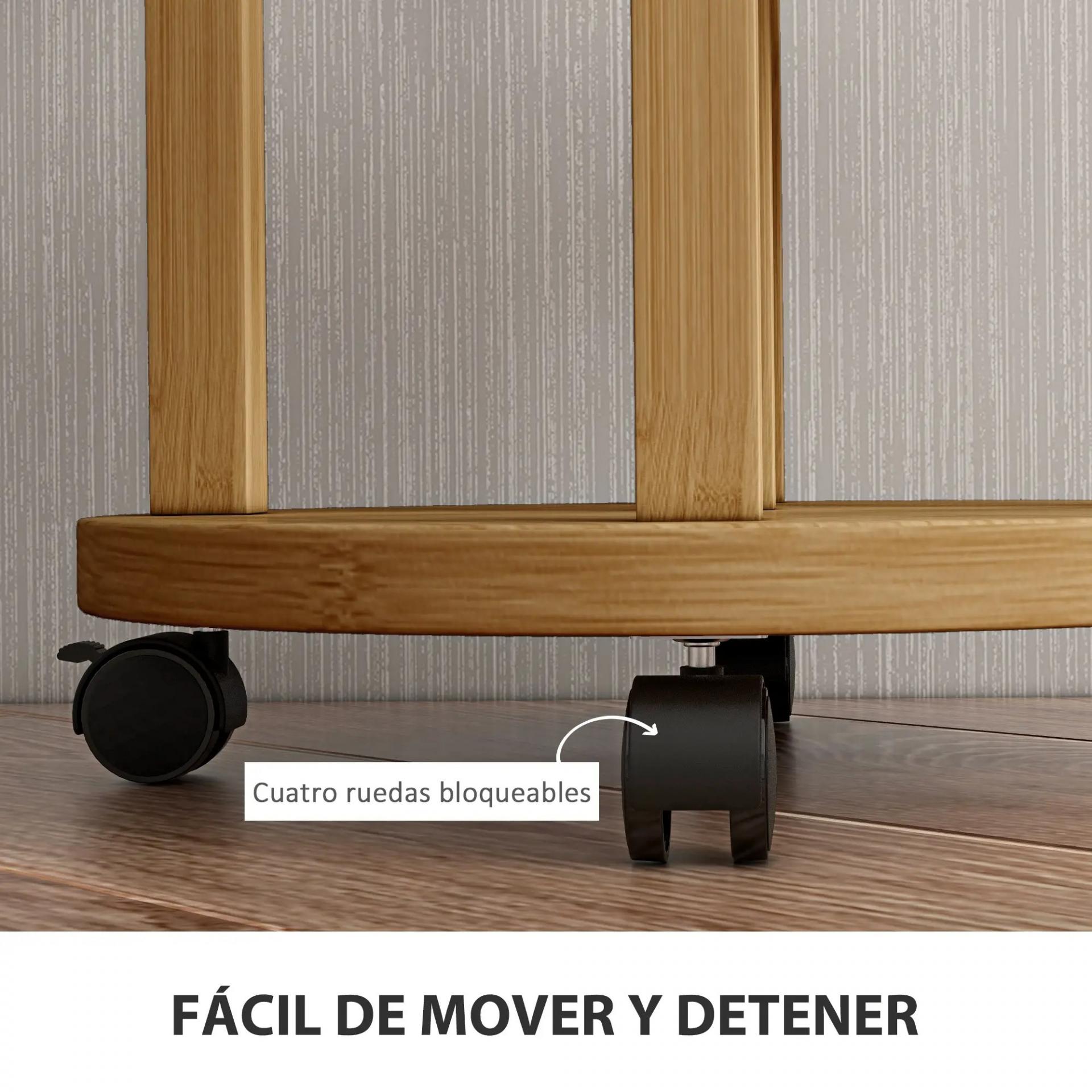 Soporte para Plantas de Bambú con Ruedas de 5 Niveles Estantería Redonda para Plantas para Esquina 33x33x90 cm Natural