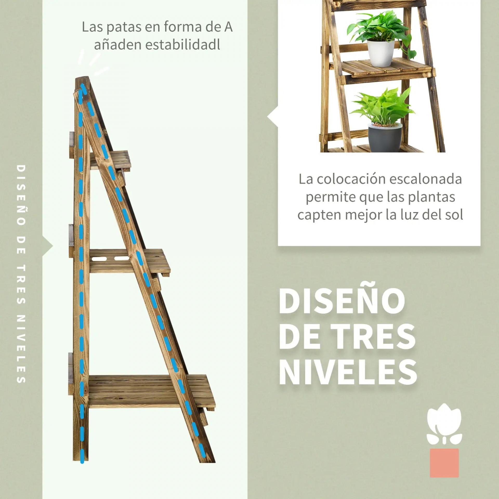 - - SOPORTE DE MADERA PARA MACETAS: Fabricado en madera de abeto sólida con acabado carbonizado, este soporte para macetas está diseñado para resistir las condiciones exteriores y proporcionar un drenaje adecuado para tus plantas. Su estilo rústico natural añade un toque decorativo único