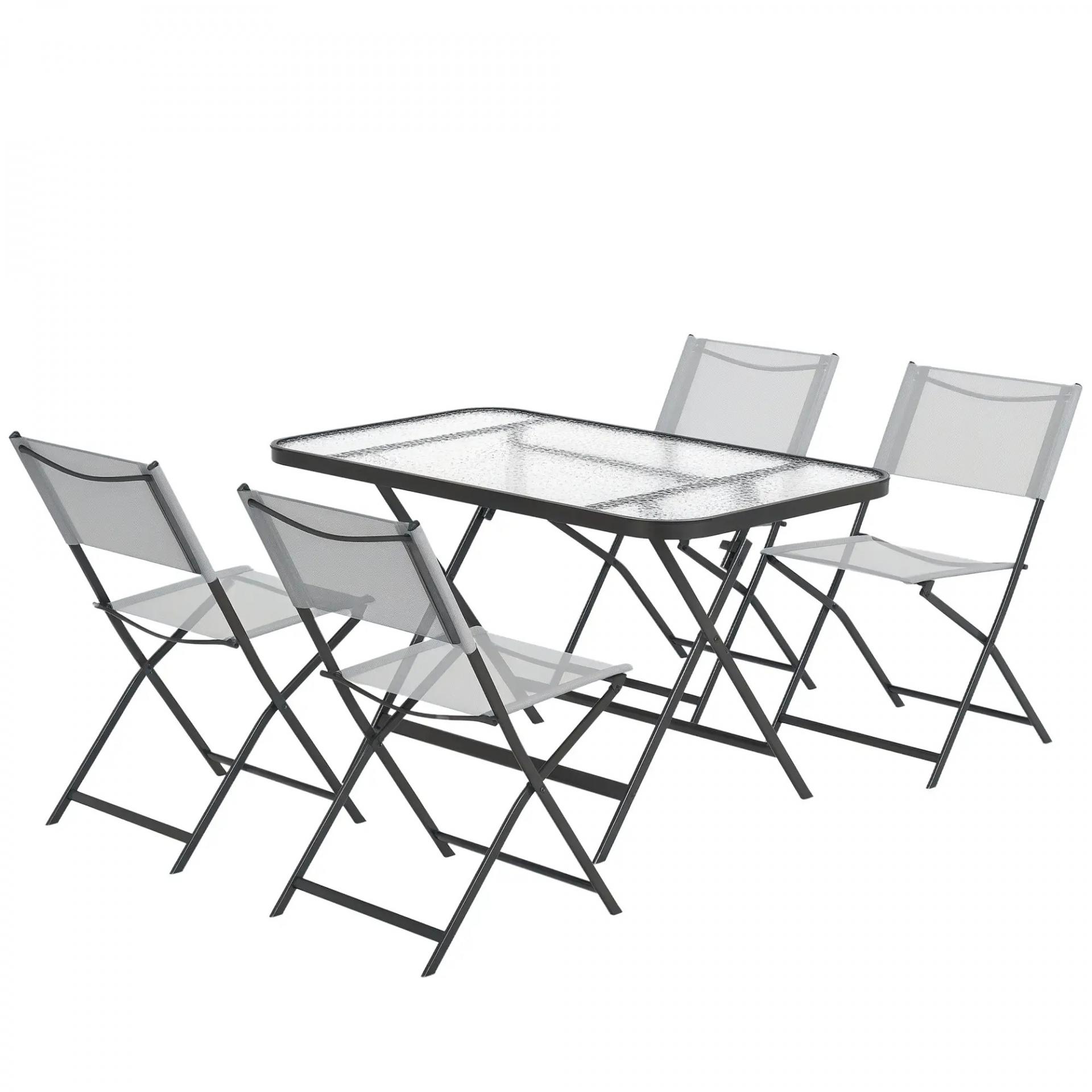 Conjunto de Mesa y 4 Sillas de Jardín Plegable con Mesa de Vidrio Templado Estilo Moderno para Terraza Patio Gris