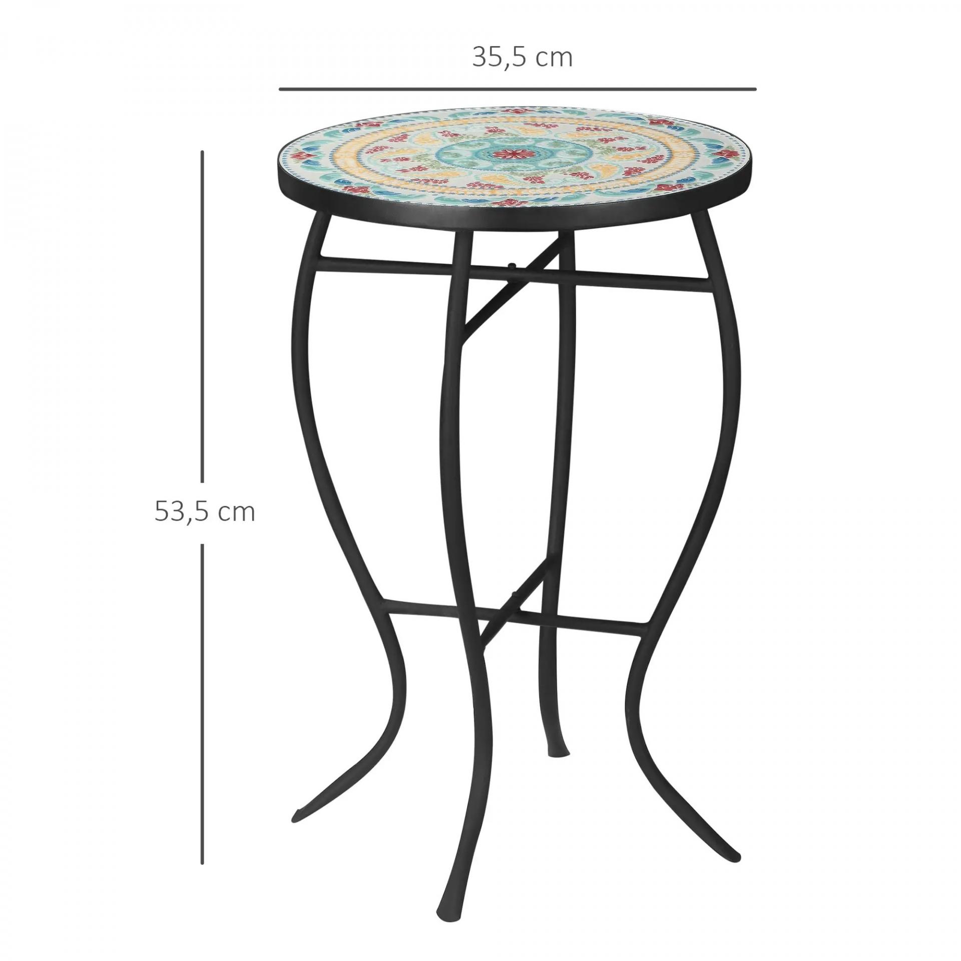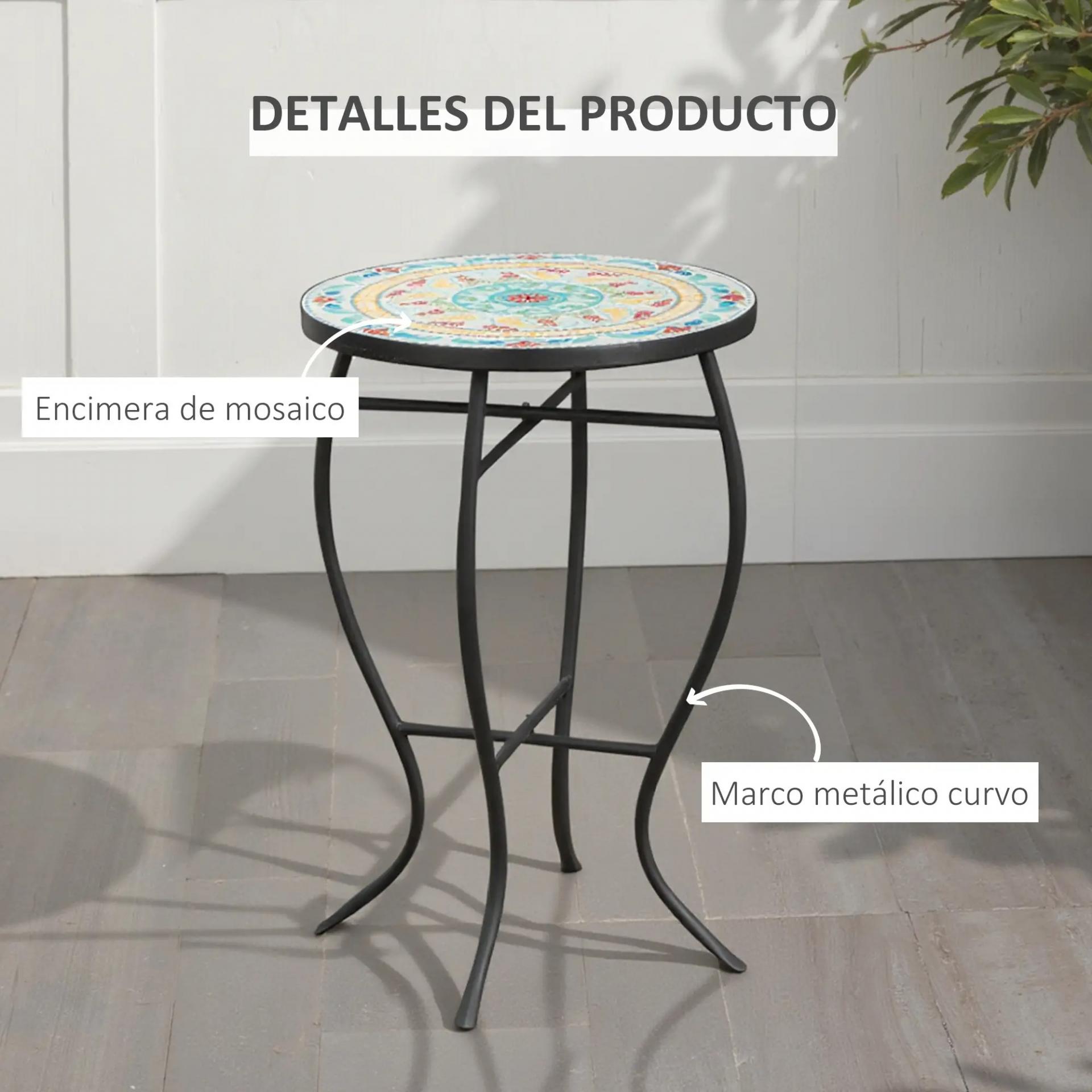 - - VERSÁTIL: Gracias a su diseño, esta mesa mosaico de comedor se puede utilizar en diferentes espacios y desempeñar diferentes funciones. Puede usarse como mesita de jardín para combinar con 2 sillas, como mesita de noche, soporte para plantas, etc.