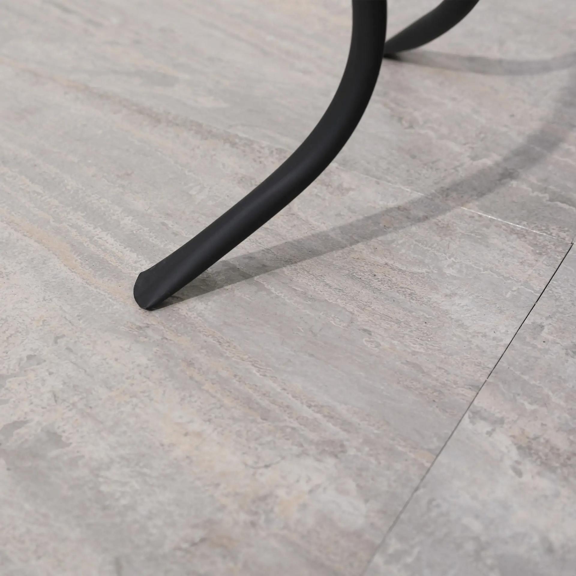 - - RESISTENTE Y ESTABLE: La estructura de esta mesa auxiliar de exterior está hecha de metal, con recubrimiento en polvo para mayor resistencia a la intemperie y a la corrosión. La forma curva de las patas, además de aportar un toque extra de elegancia a la mesa, mejora la estabilidad de la misma