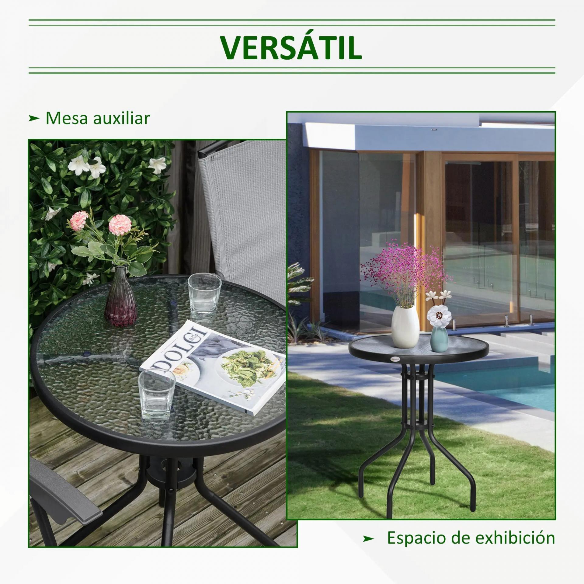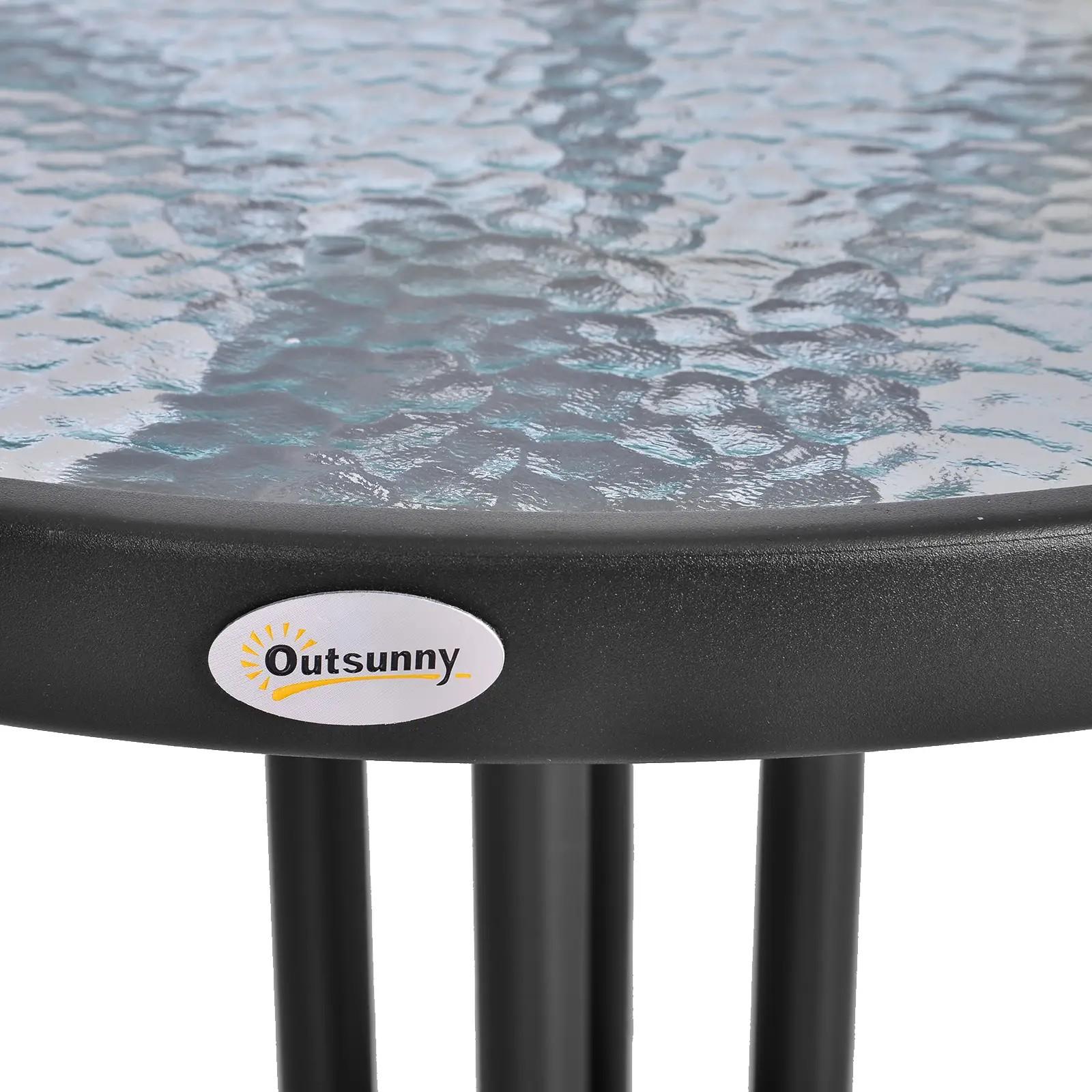 Mesa de Jardín Redonda con Encimera de Vidrio Templado Decorativa y Marco de Metal para Patio Terraza Balcón Comedor Ø60x70 cm Negro