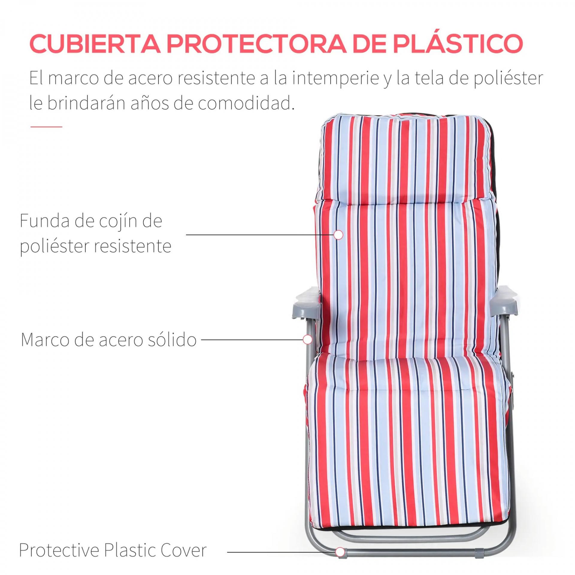 2 Tumbonas de Jardín de Acero con Cojín Acolchado Respaldo Ajustable y Reposapiés 60x75x65-102 cm Rayas Rojo