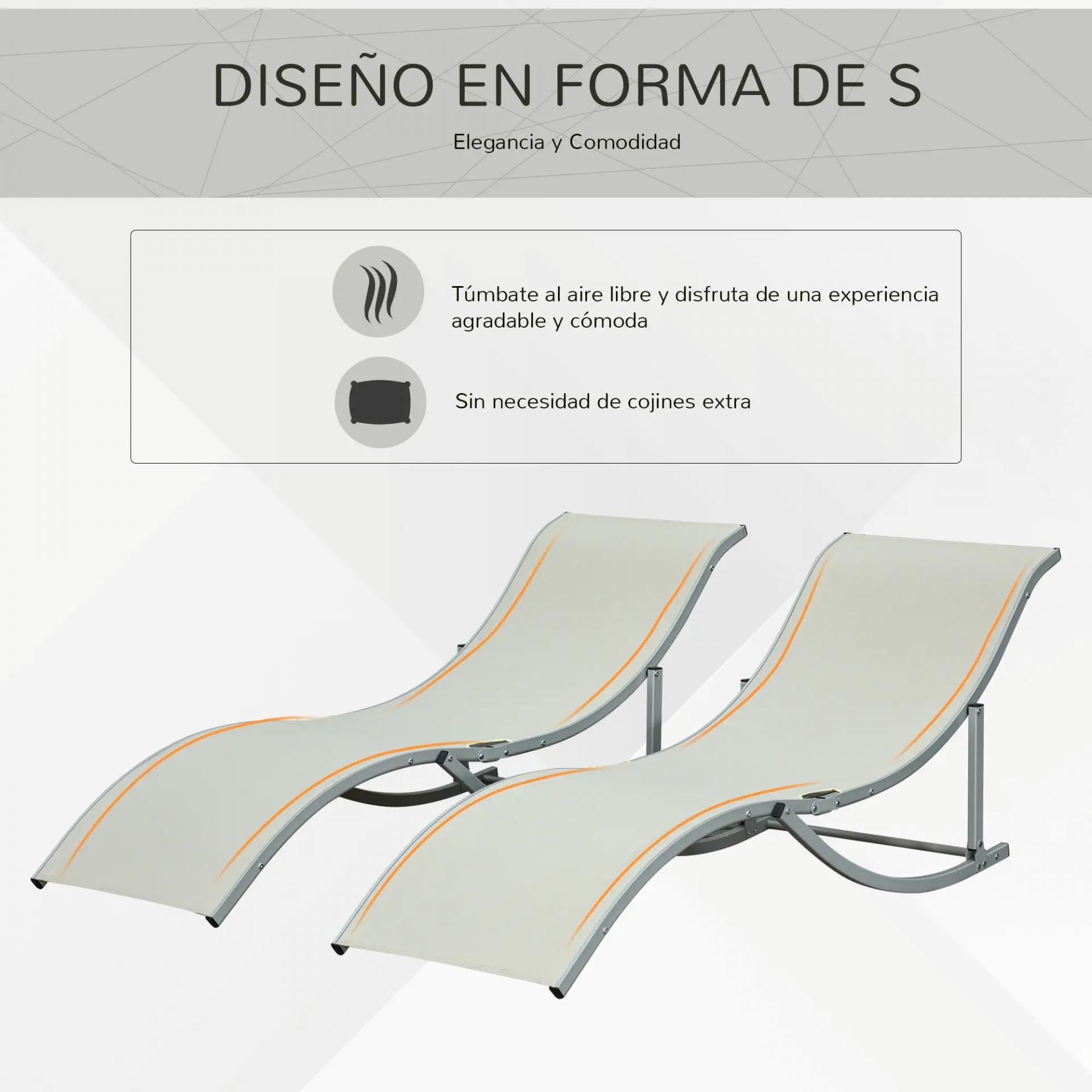 2 Tumbonas Plegables en Forma de S Ergonómica con Marco de Aluminio Texteline para Piscina Patio Jardín Terraza 165x61x63 cm Crema