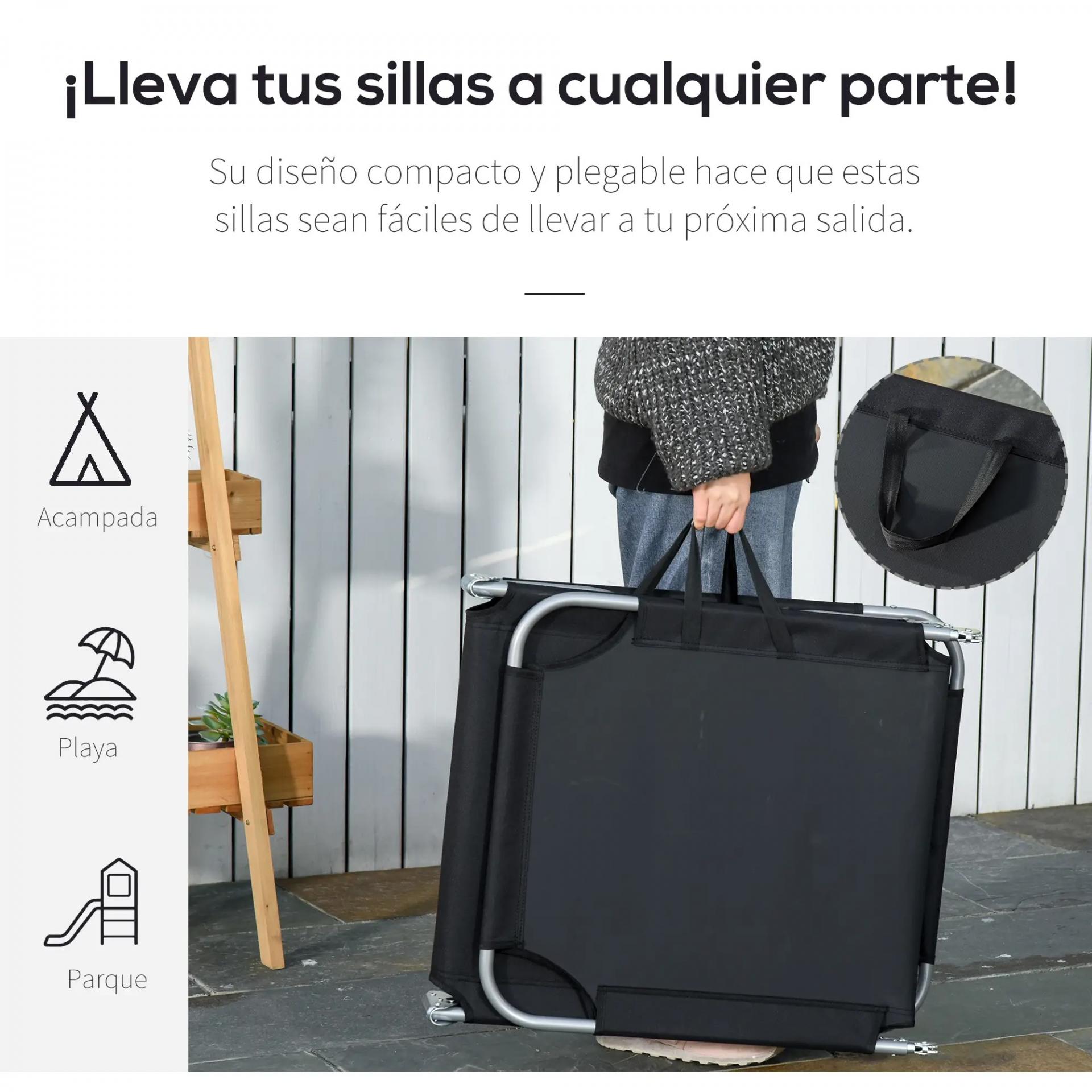 - - RECLINACIÓN AJUSTABLE: Esta tumbona plegable cuenta con un respaldo ajustable para adaptarse a tus necesidades. Cambia fácilmente la posición para leer, relajarte o tomar el sol, eligiendo la inclinación que te resulte más cómoda en cada momento