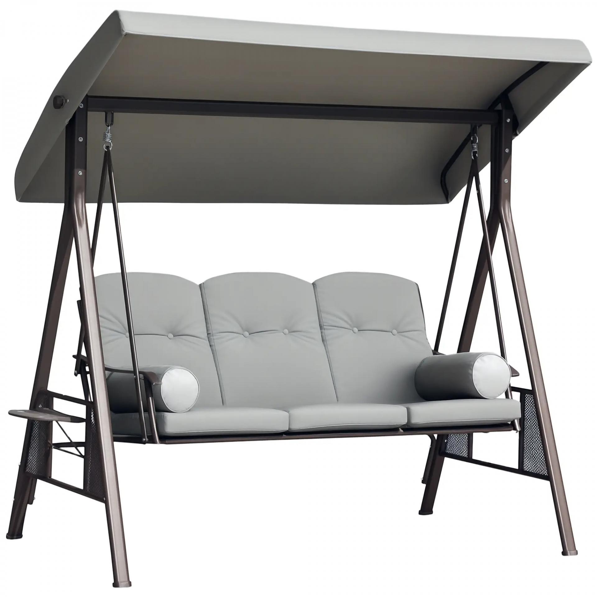 Columpio de Jardín de 3 Plazas con Estructura Metálica Toldo y Bandeja para Bebidas para Exterior 116x206x183 cm Gris