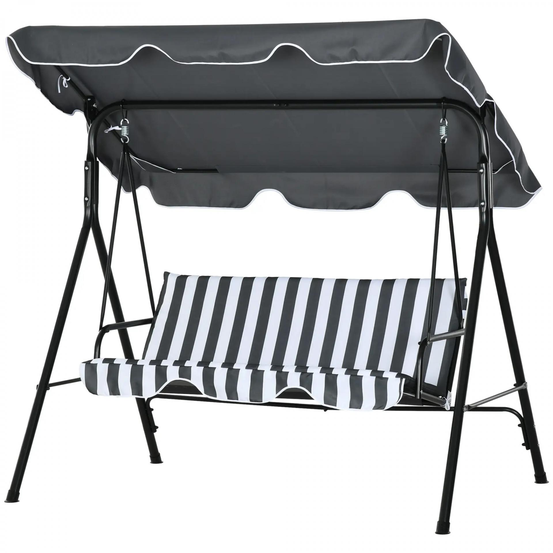 Balancín de Jardín Exterior Columpio de 3 Plazas con Toldo Ajustable y Marco de Acero 172x110x153 cm Gris y Blanco