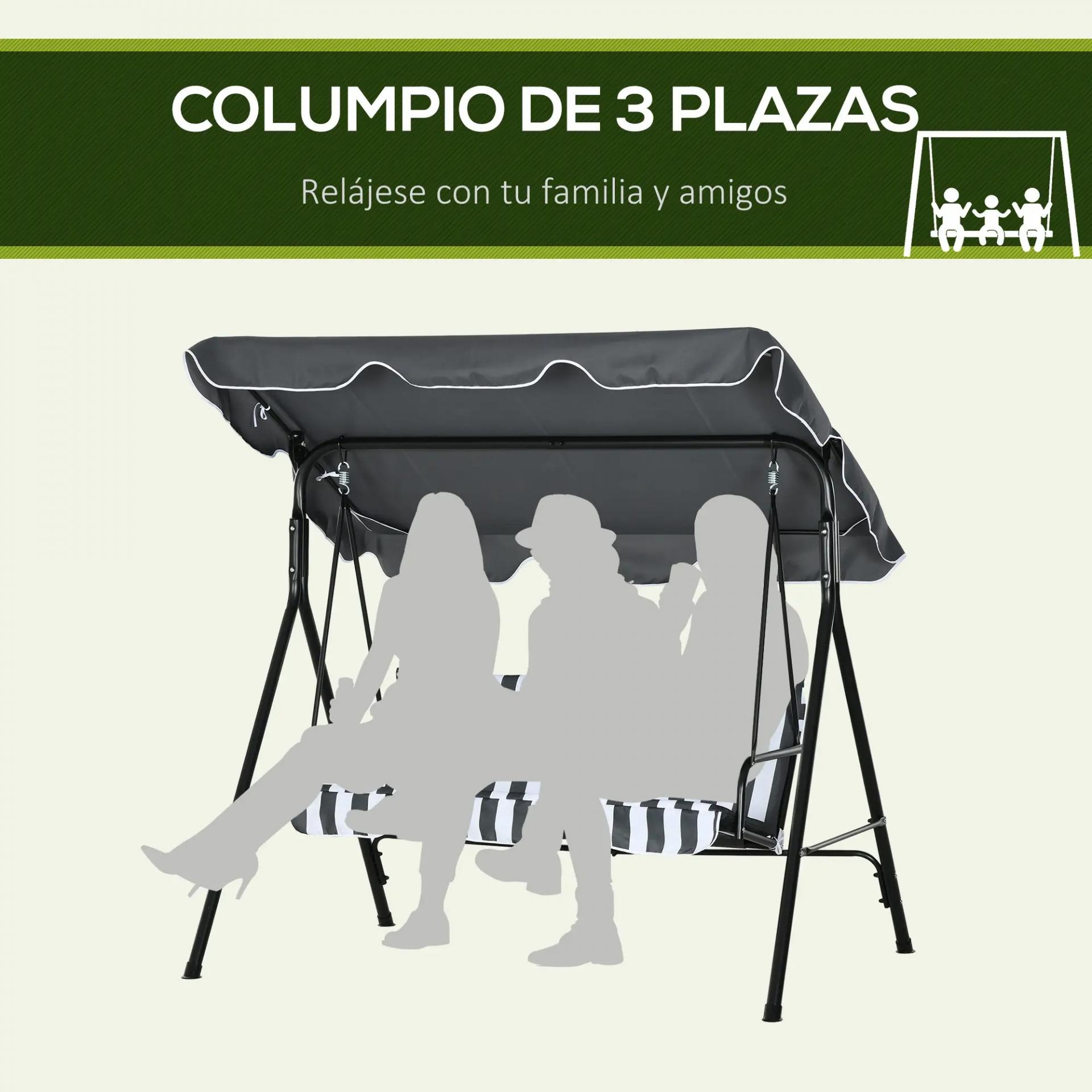 - BALANCÍN DE JARDÍN DE 3 PLAZAS: Columpio de jardín elegante con toldo con faldón decorativo. Ideal para colocar en tu jardín, patio, terraza o cualquier otro espacio exterior y, disfrutar del tiempo libre con familiares y amigos