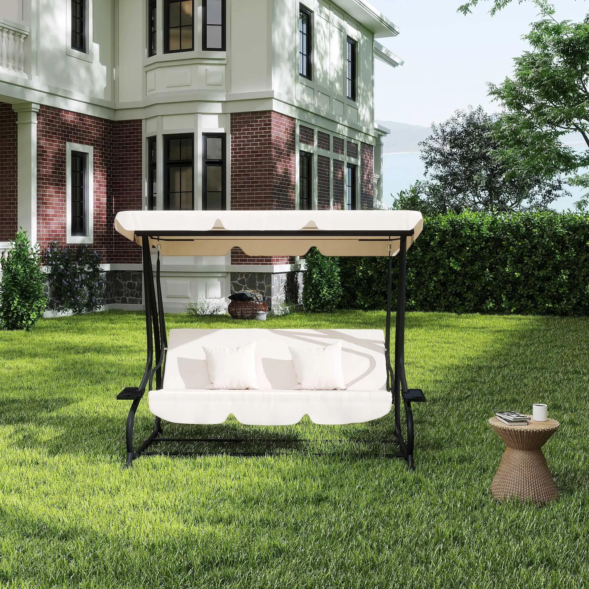 Balancín de Jardín Exterior de 3 Plazas 2 en 1 con Toldo Ajustable Bandejas Laterales y Cojines 200x120x164 cm Arena