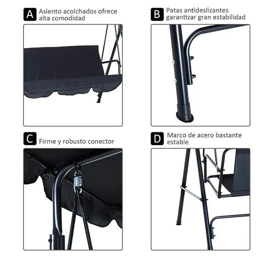 - - ESTRUCTURA RESISTENTE: Marco metálico en forma de "A" para una estabilidad uniforme, lacado con pintura con recubrimiento en polvo para mayor resistencia a la intemperie y a la corrosión. Las patas cuentan con pies antideslizantes para proteger el suelo de daños y rayones y añadir estabilidad al balancín de jardín exterior