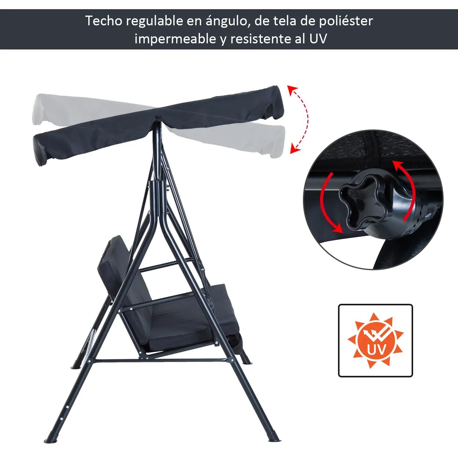 Balancín de Jardín con Techo Ajustable en Ángulo Carga Máx. 200 kg Acero 172x110x153 cm Negro