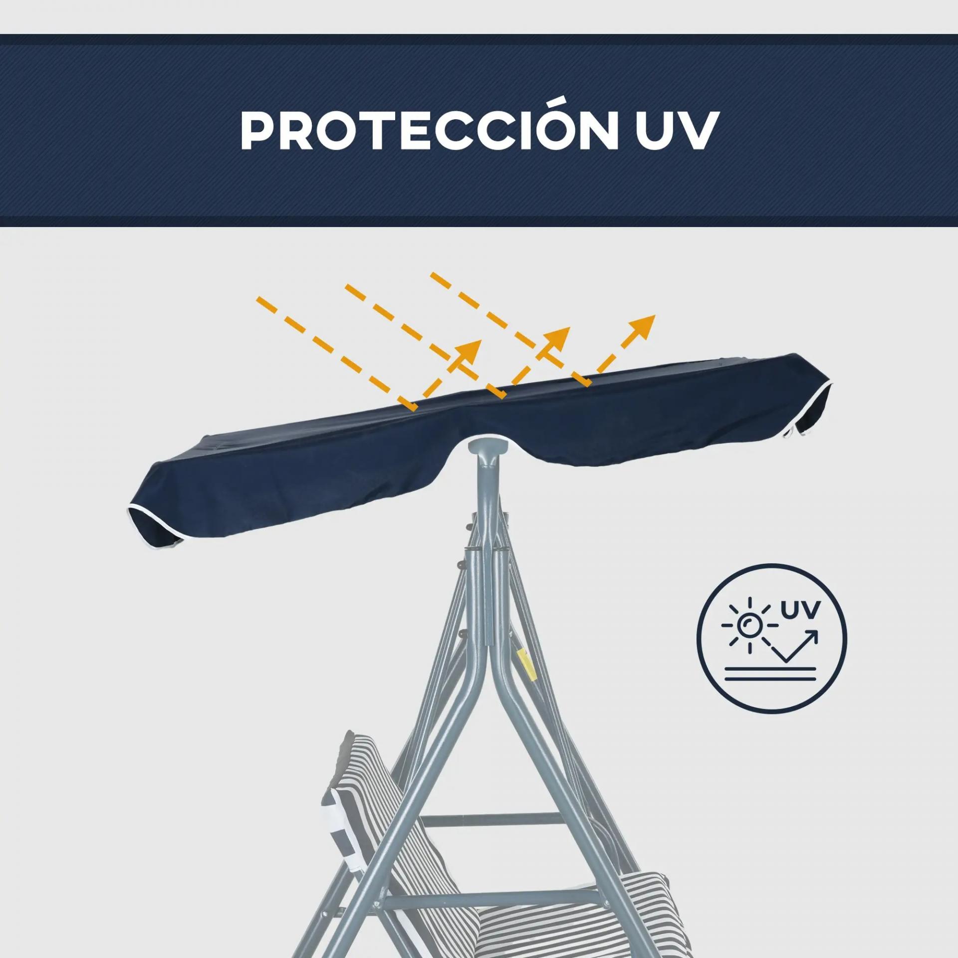 Columpio Balancín de Jardín de 3 Plazas con Cojín Techo Ajustable y Marco de Acero 172x110x153 cm Rayas Azul y Blanco