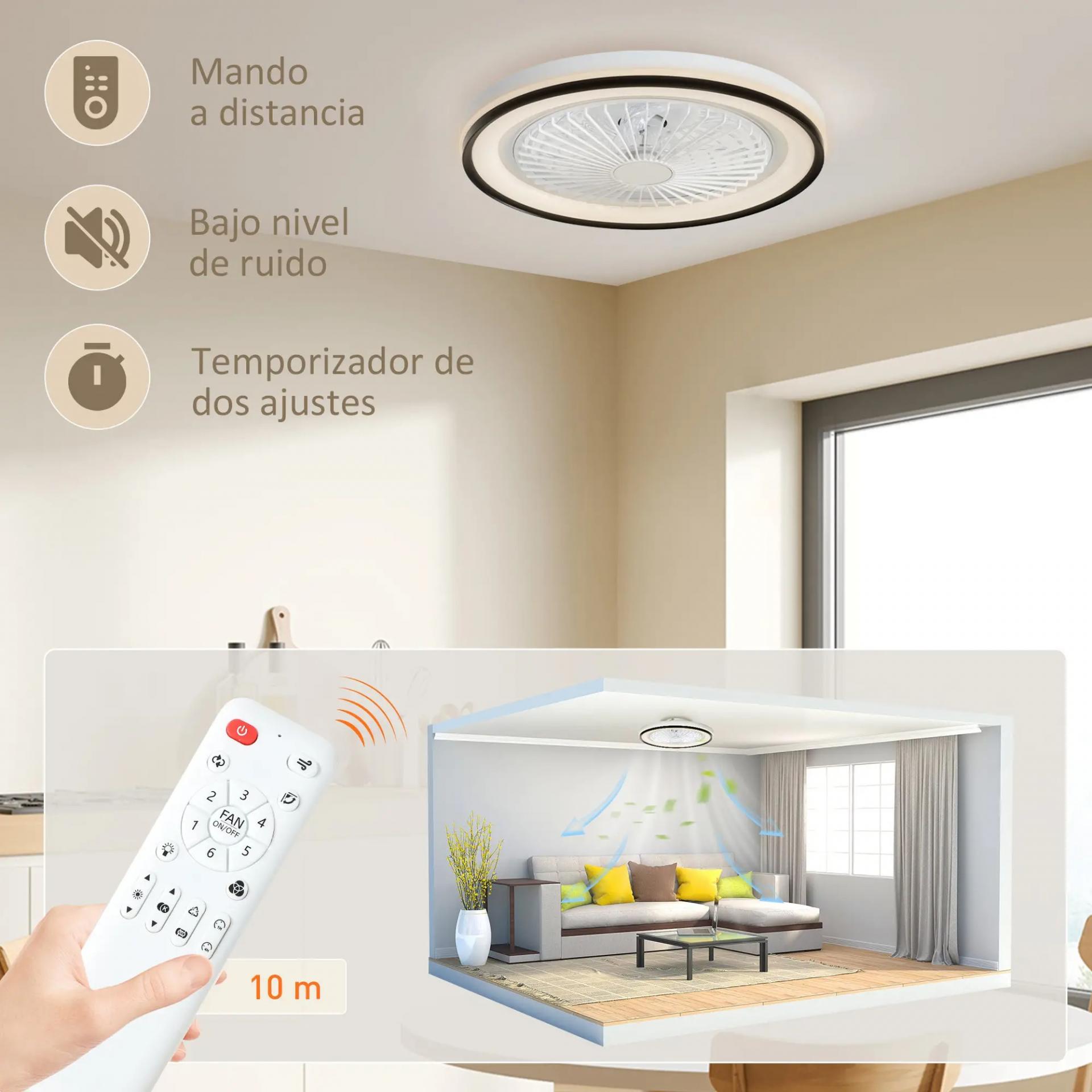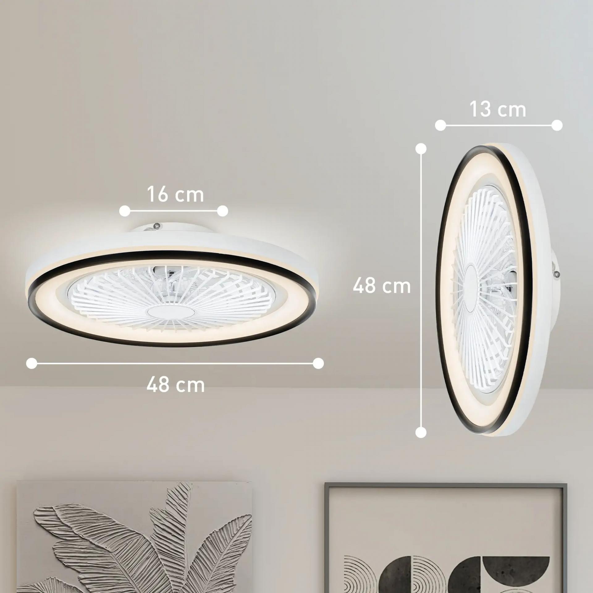 Ventilador de Techo con Iluminación RGB 6 Velocidades Motor Reversible y Control Remoto Potencia 48,5W Ø48x13 cm Blanco