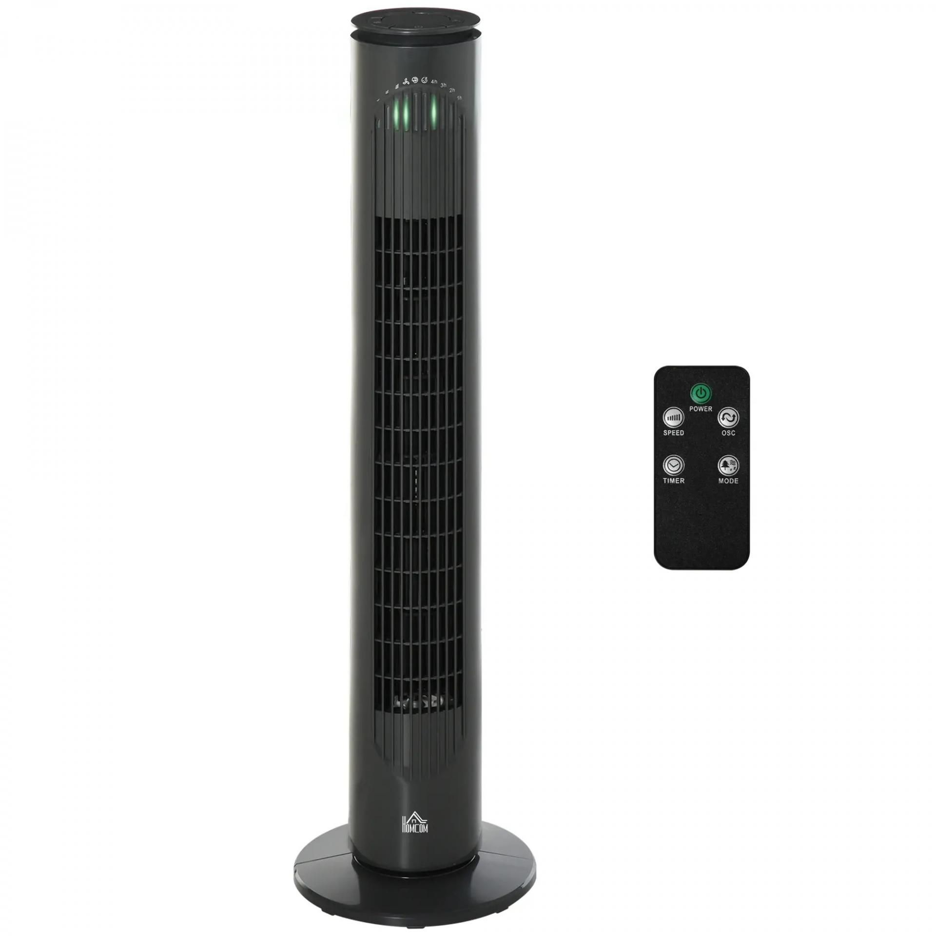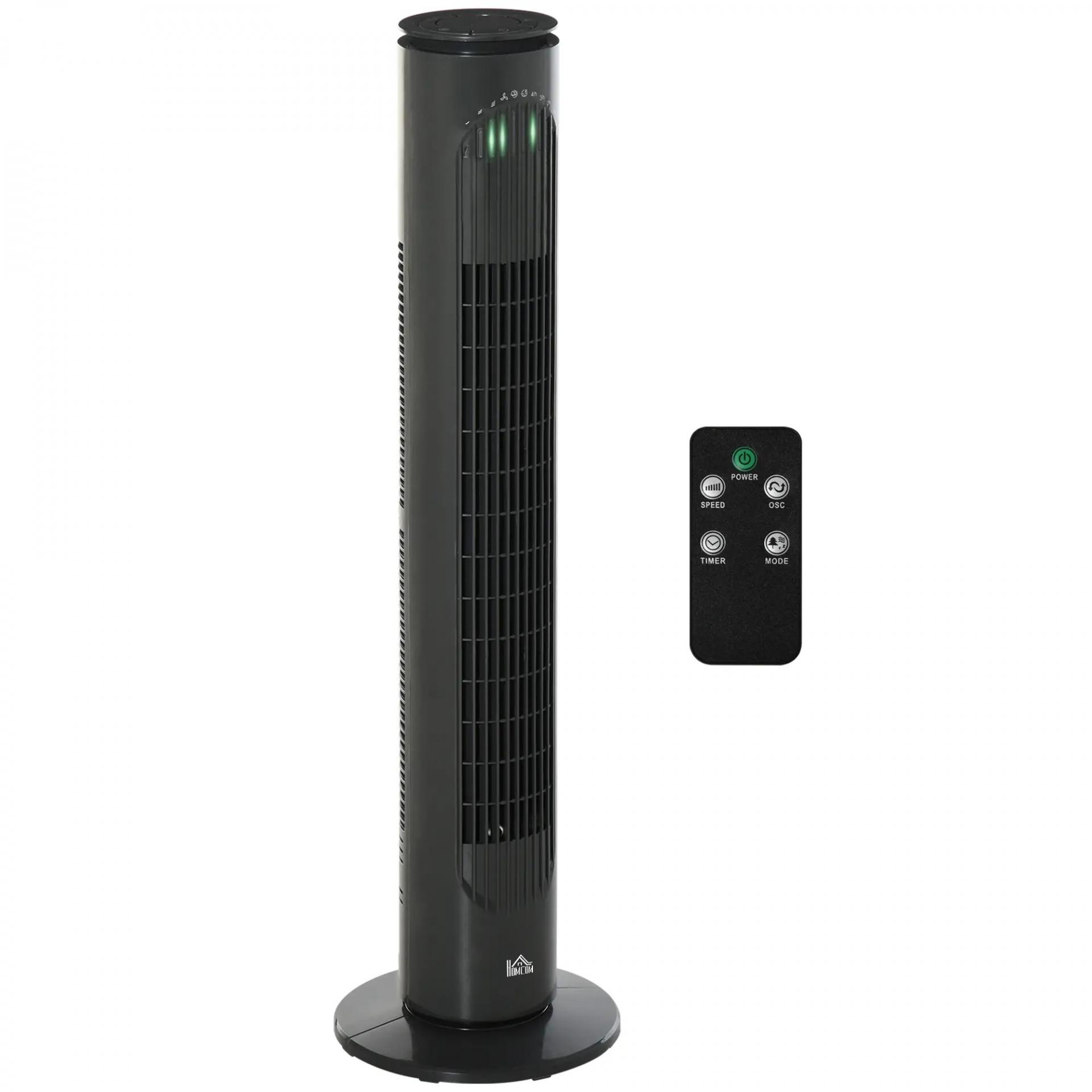 Ventilador de Torre Silencioso con Control Remoto 3 Velocidades 3 Modos Temporizador 10H Oscilación 70° Gris Oscuro