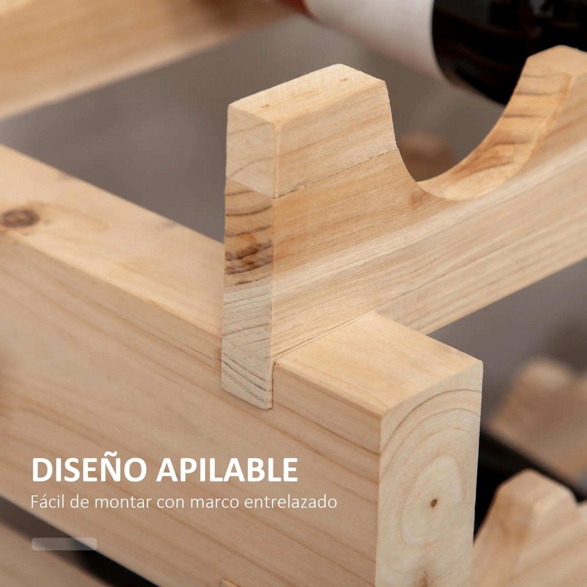 - - ESTRUCTURA RESISTENTE: Fabricado en madera de abeto resistente, este botellero de madera ofrece una estructura firme y duradera, diseñada para resistir el desgaste del uso diario. Es un complemento perfecto tanto para bodegas como para tu cocina o comedor