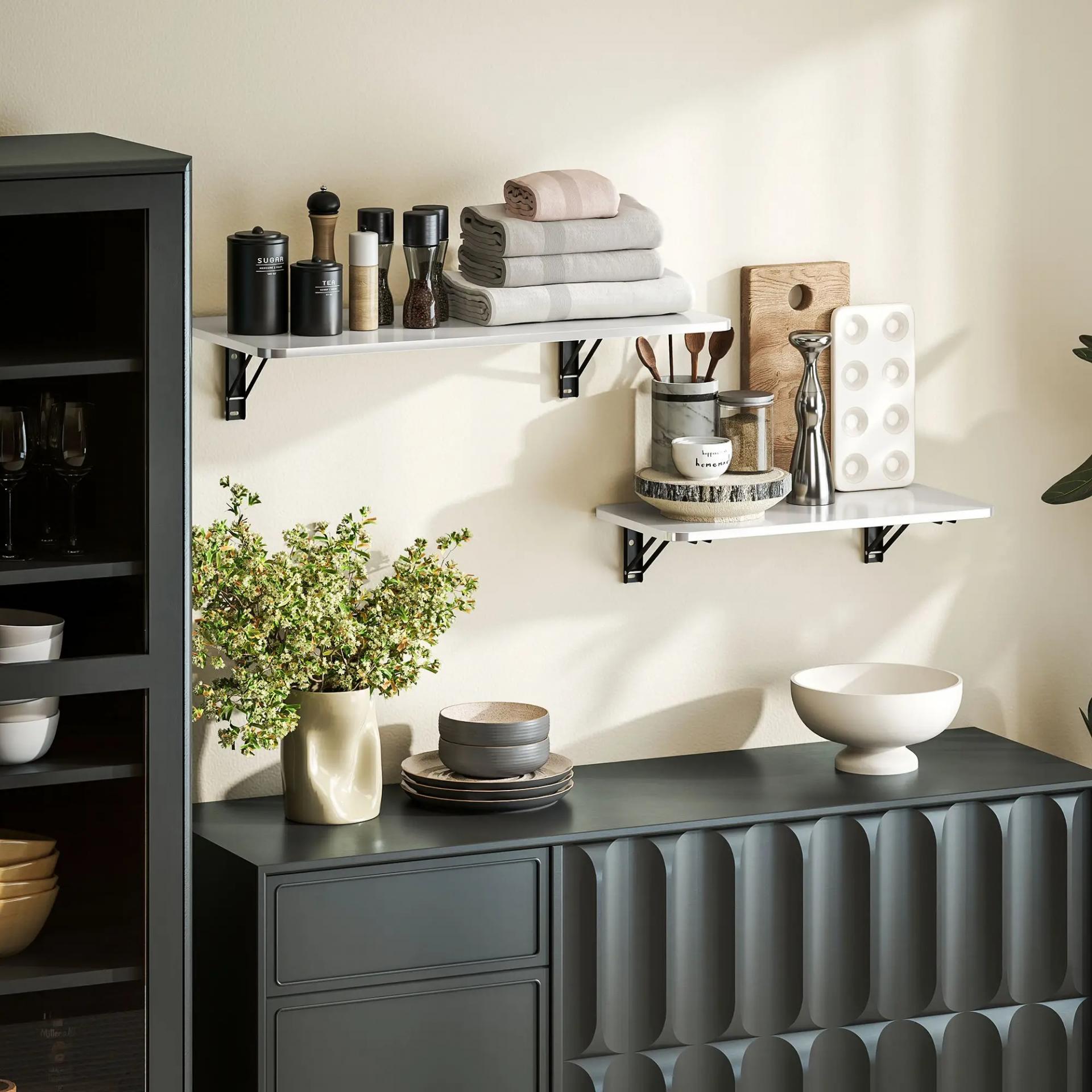 - - RESISTENTE Y ESTABLE: Fabricadas en melamina MDF de alta calidad, estas mesas de pared plegables garantizan una estructura firme y duradera. Cada una soporta hasta 30 kg, ofreciendo estabilidad y seguridad para su uso diario
