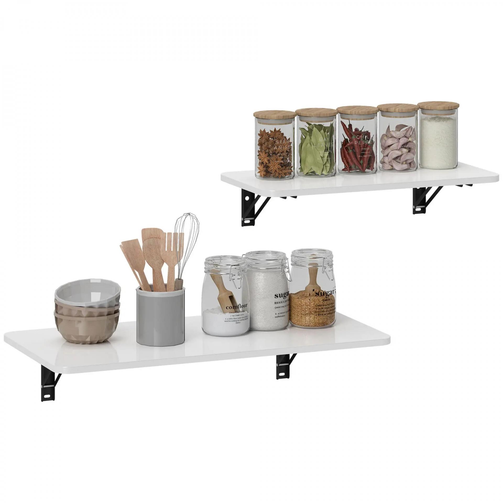 Juego de 2 Mesas Plegables de Pared, Escritorios Flotantes para Cocina Comedor, 80x40x16,5cm 60x30x11,5cm Blanco Brillo
