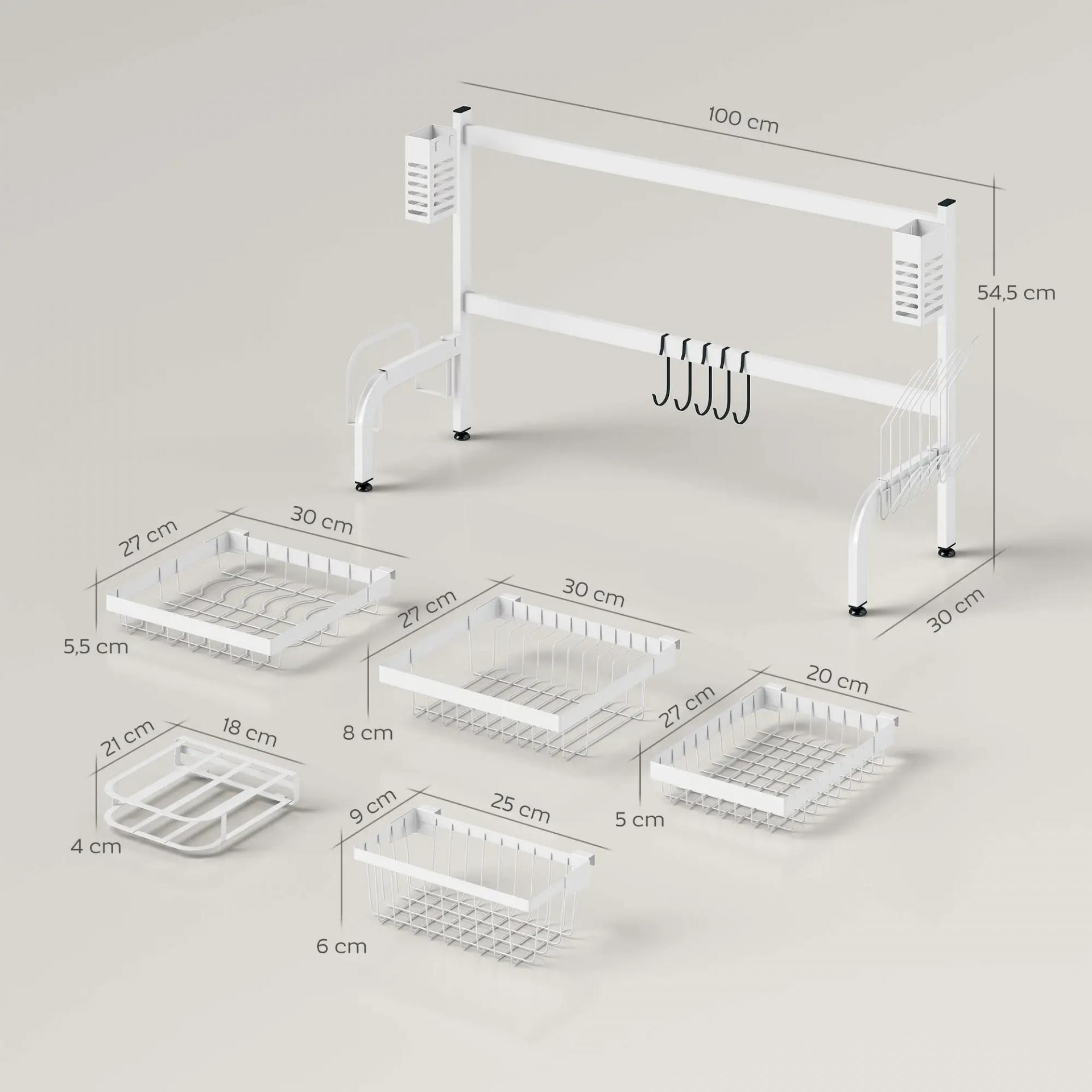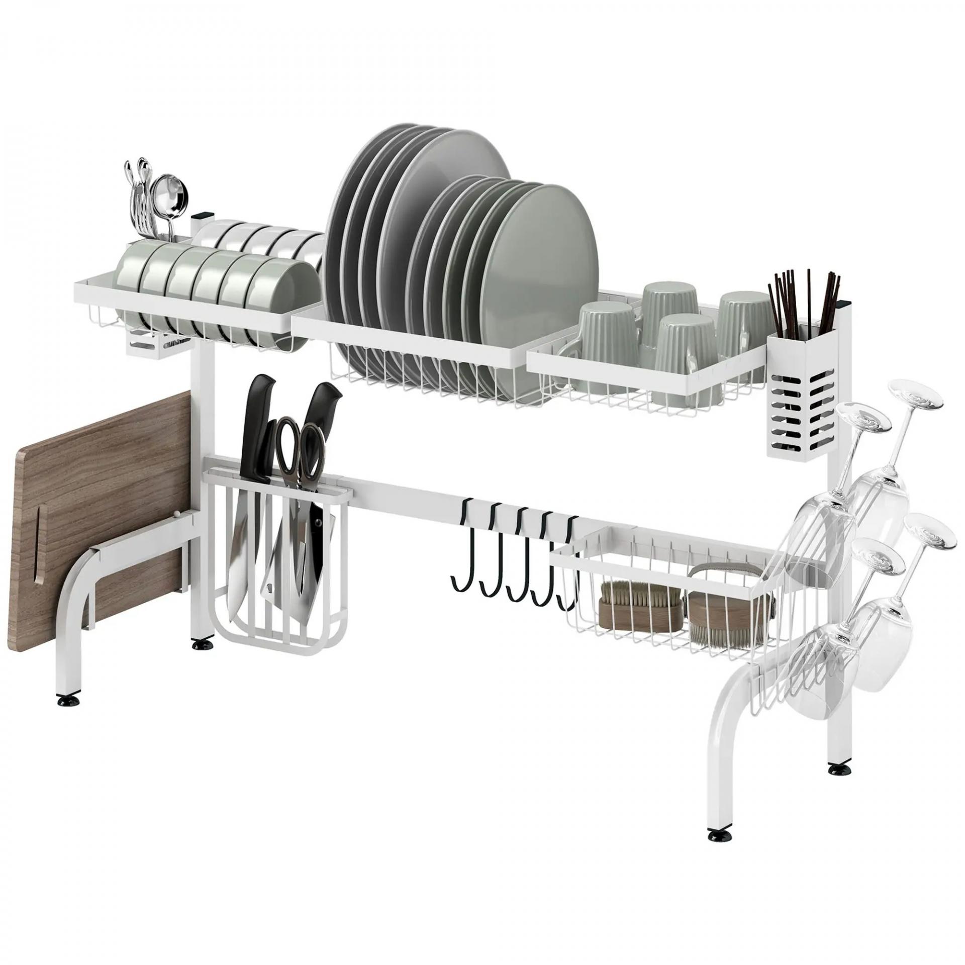 Escurreplatos de Acero de 2 Niveles para Fregadero con Soporte de Tabla de Corte y Cubiertos 100x30x54,5cm Blanco