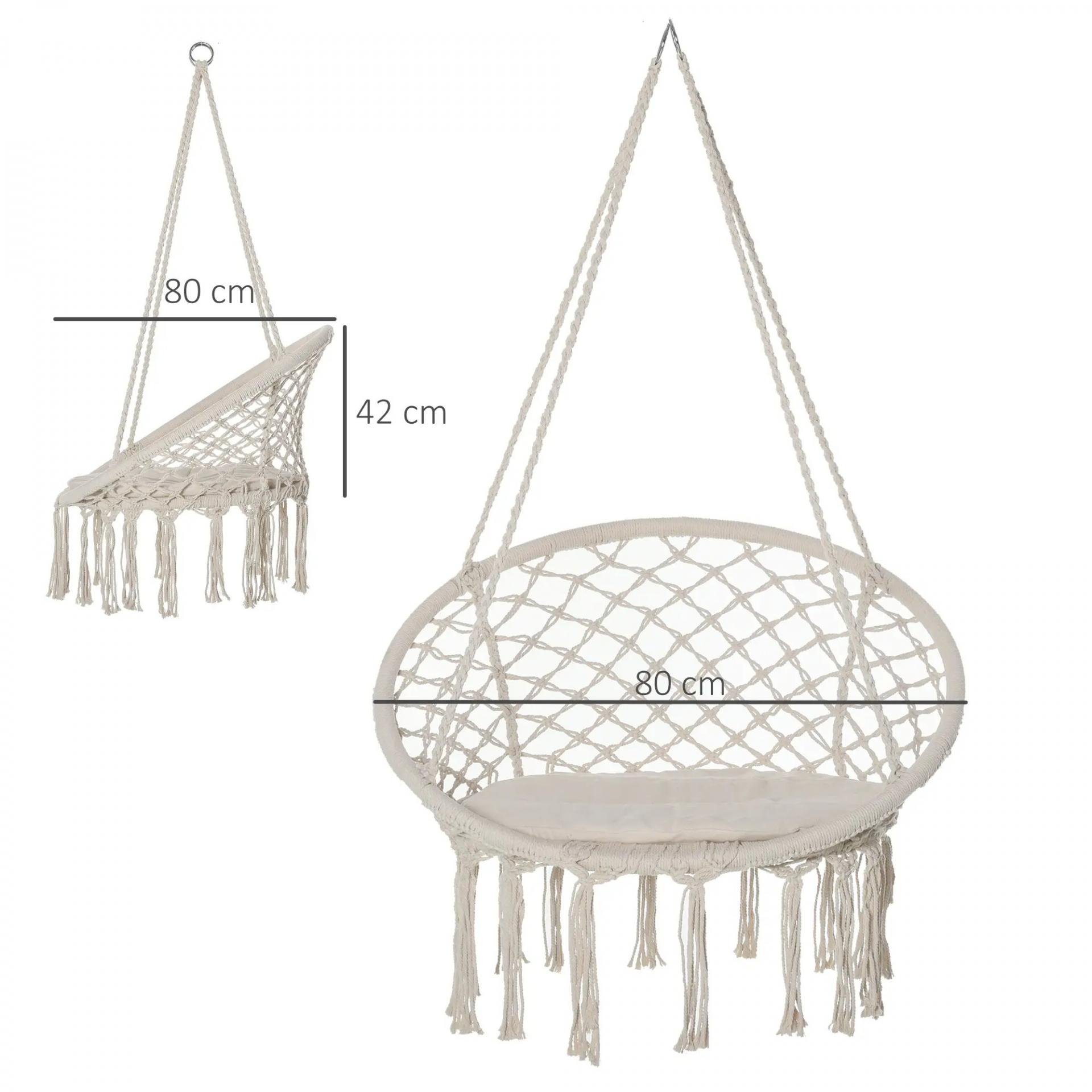 Silla Colgante Redondo de Ø60 cm Silla Hamaca Columpio con Cojín y Cuerda de Algodón para Interior y Exterior Carga 120 kg 80x80x42 cm Beige