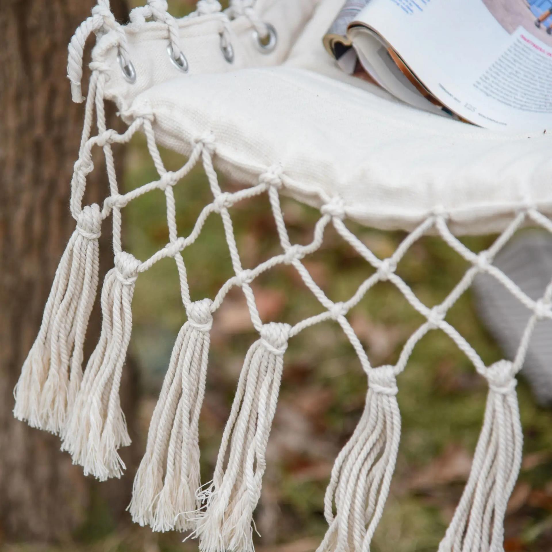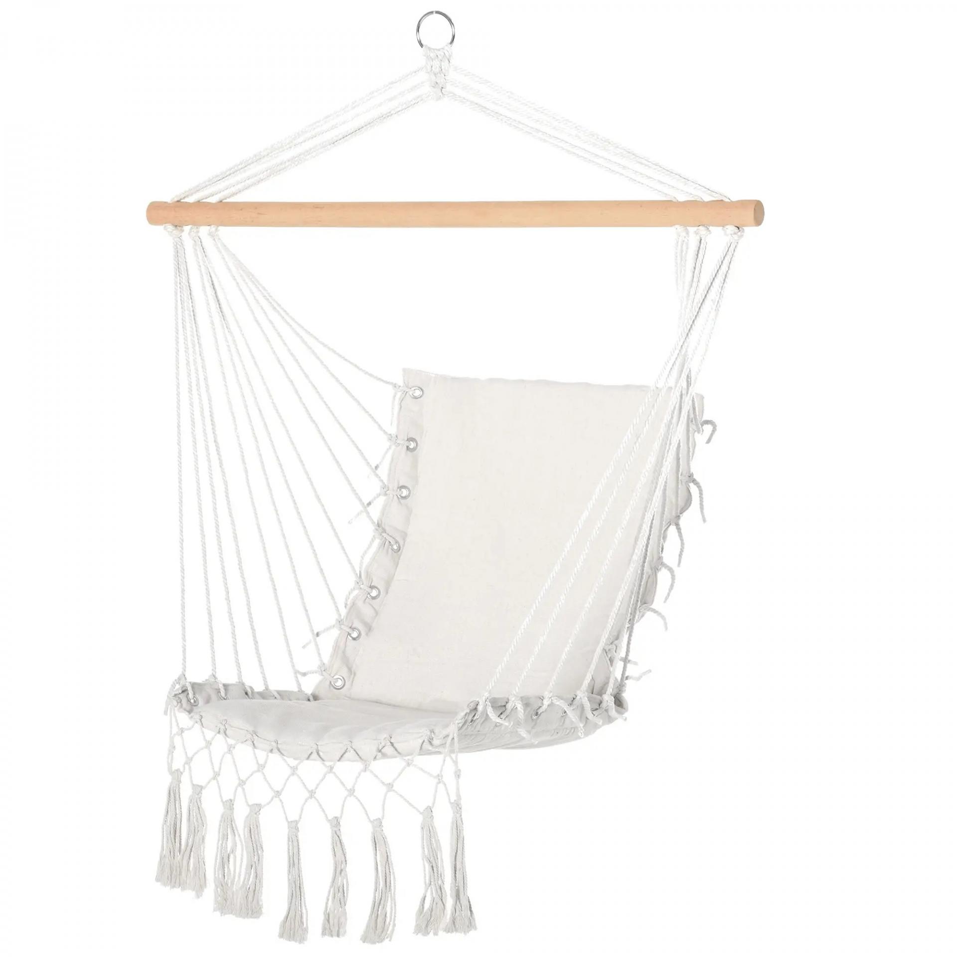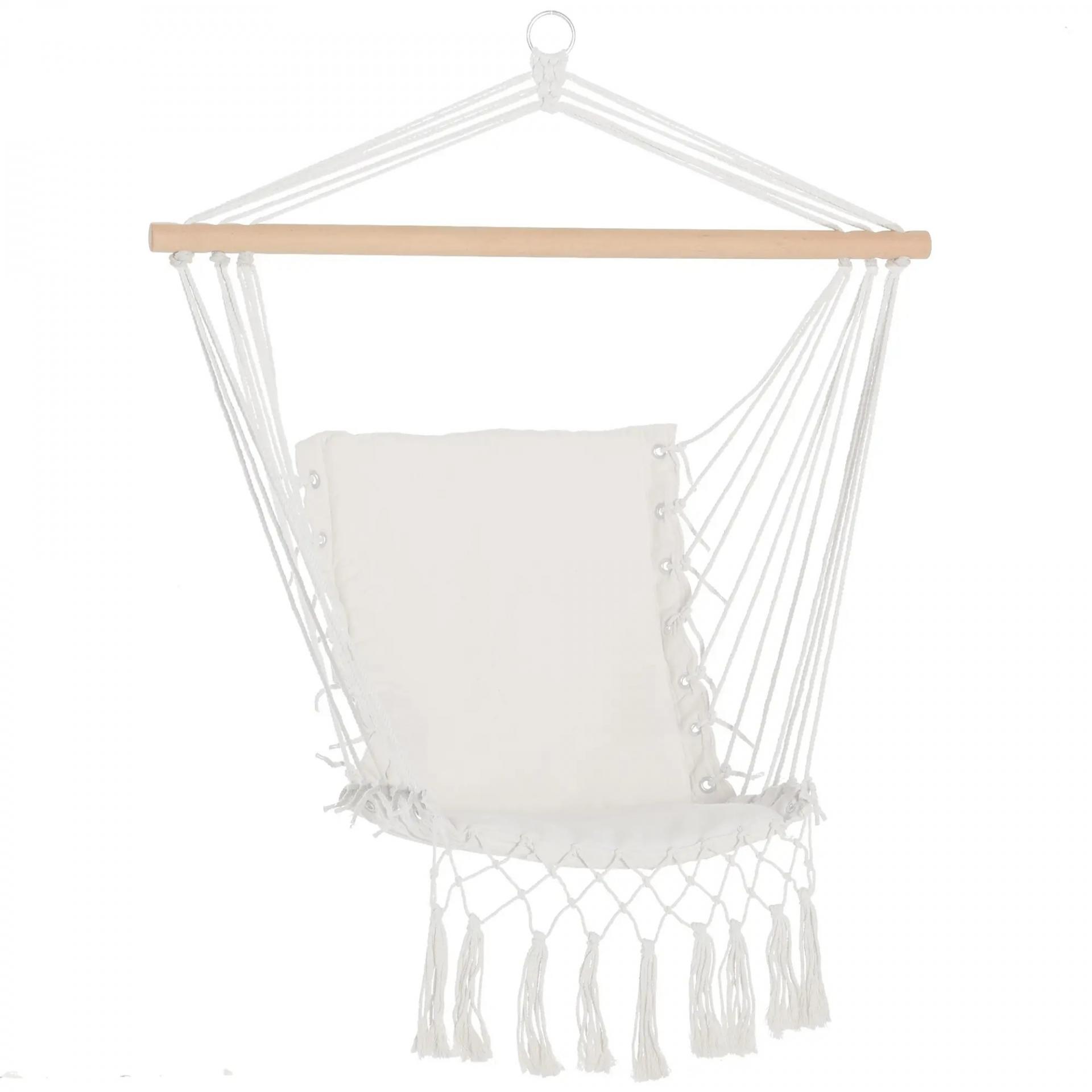 Silla Colgante con Borlas Carga 120 kg Silla Columpio de Algodón Estilo Moderno para Interior y Exterior Blanco