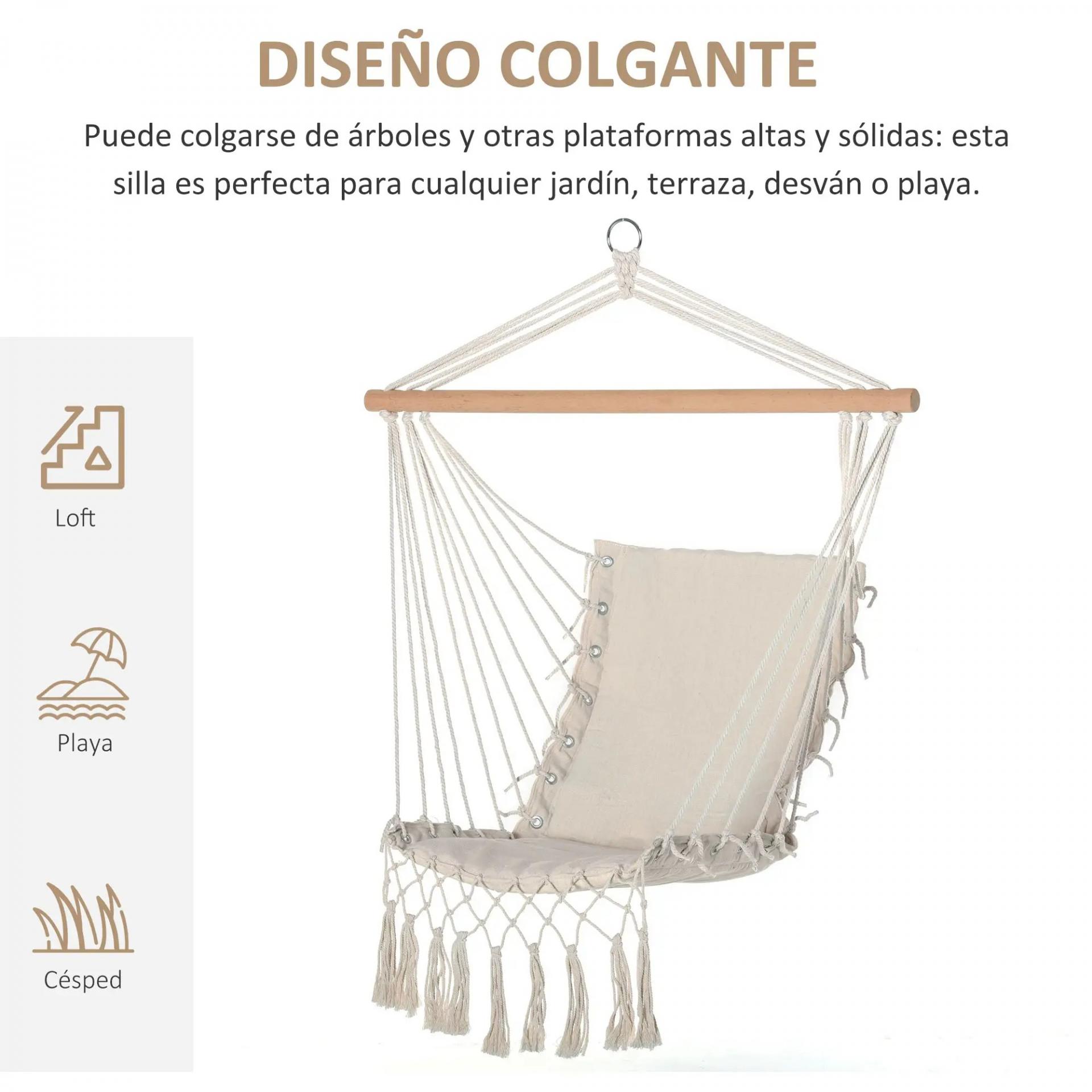 - - VERSÁTIL Y COMPACTA: Su diseño bonito y versátil, hace que esta silla colgante de jardín sea estupenda tanto para tener en cualquier espacio al aire libre, o dentro de tu hogar, en el dormitorio, salón, etc. Esta silla colgante ocupa muy poco espacio y puedes descolgarla fácilmente y llevarla contigo o almacenarla cuando no esté en uso