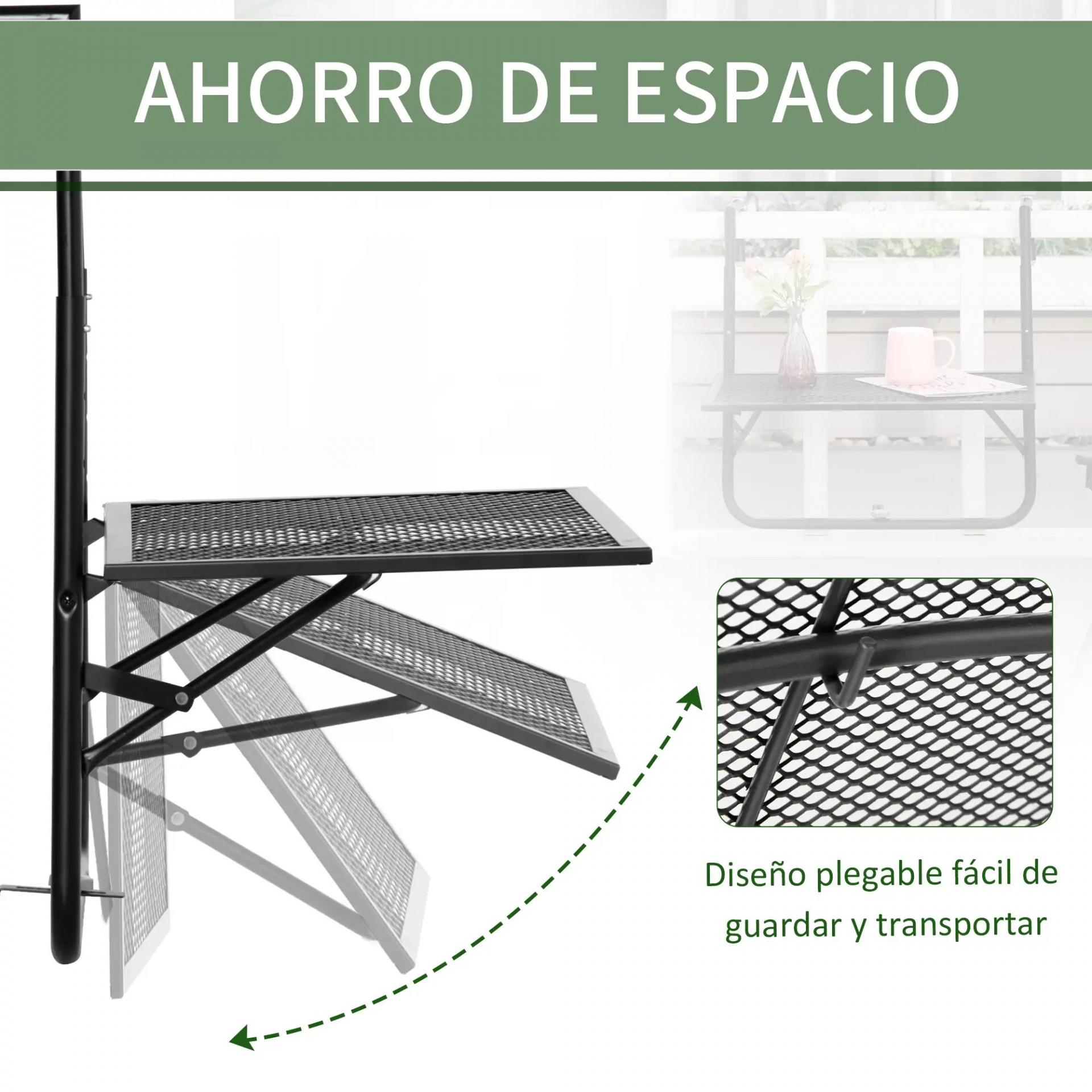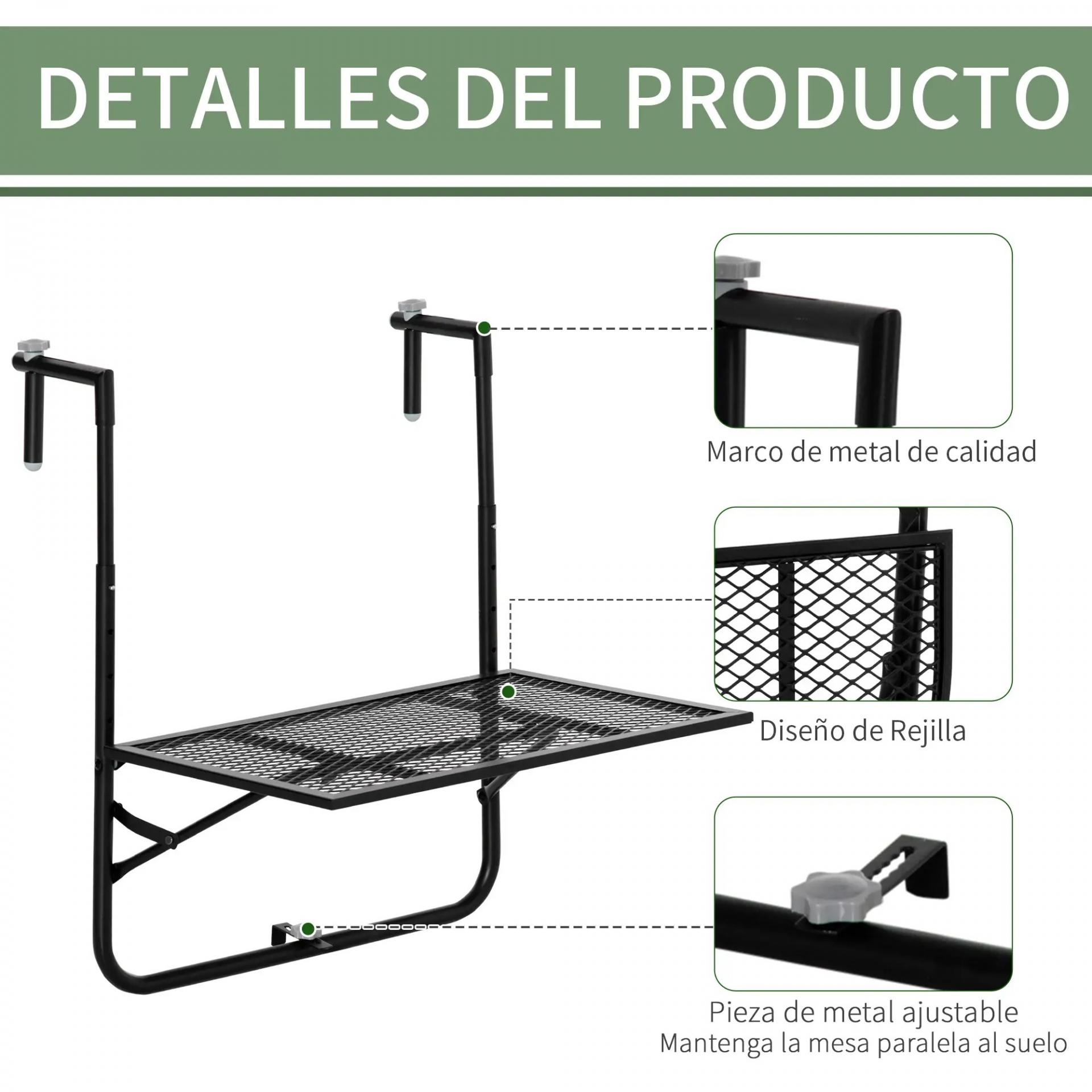 Mesa Colgante para Balcón Plegable de Metal con Altura Ajustable en 4 Niveles Carga 10 kg 60x60x57-72 cm Negro