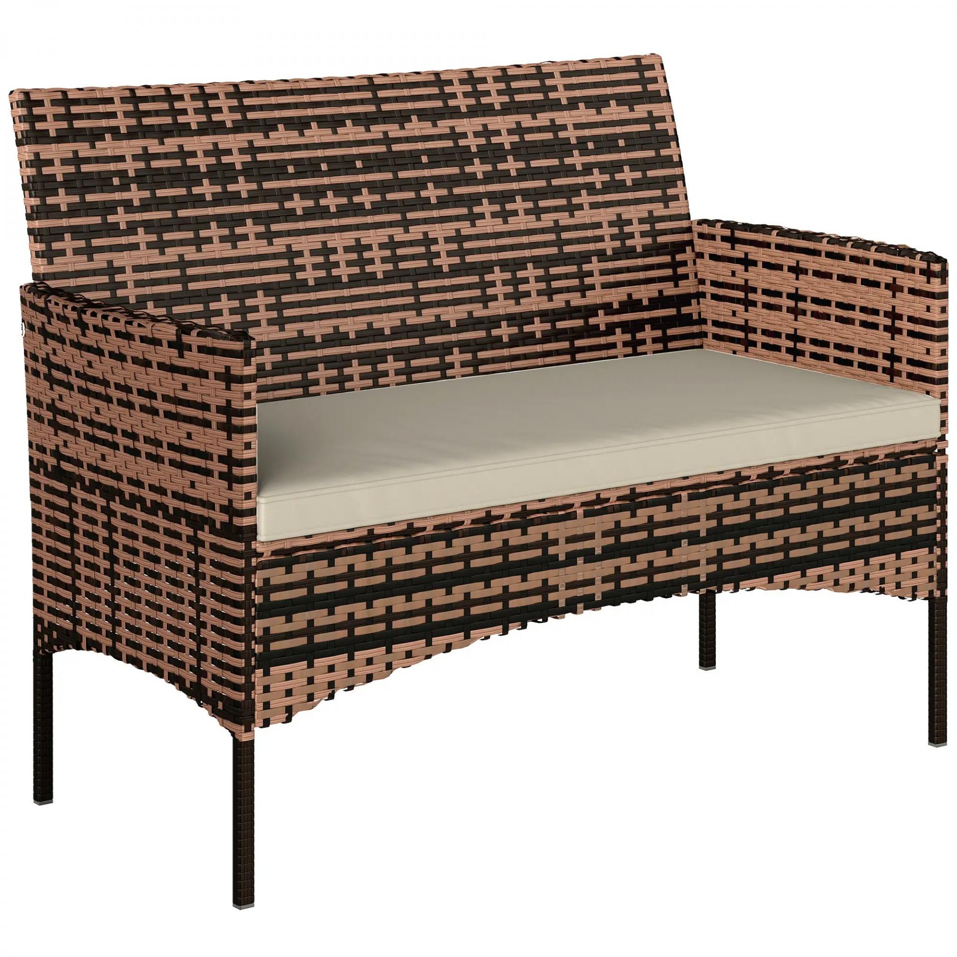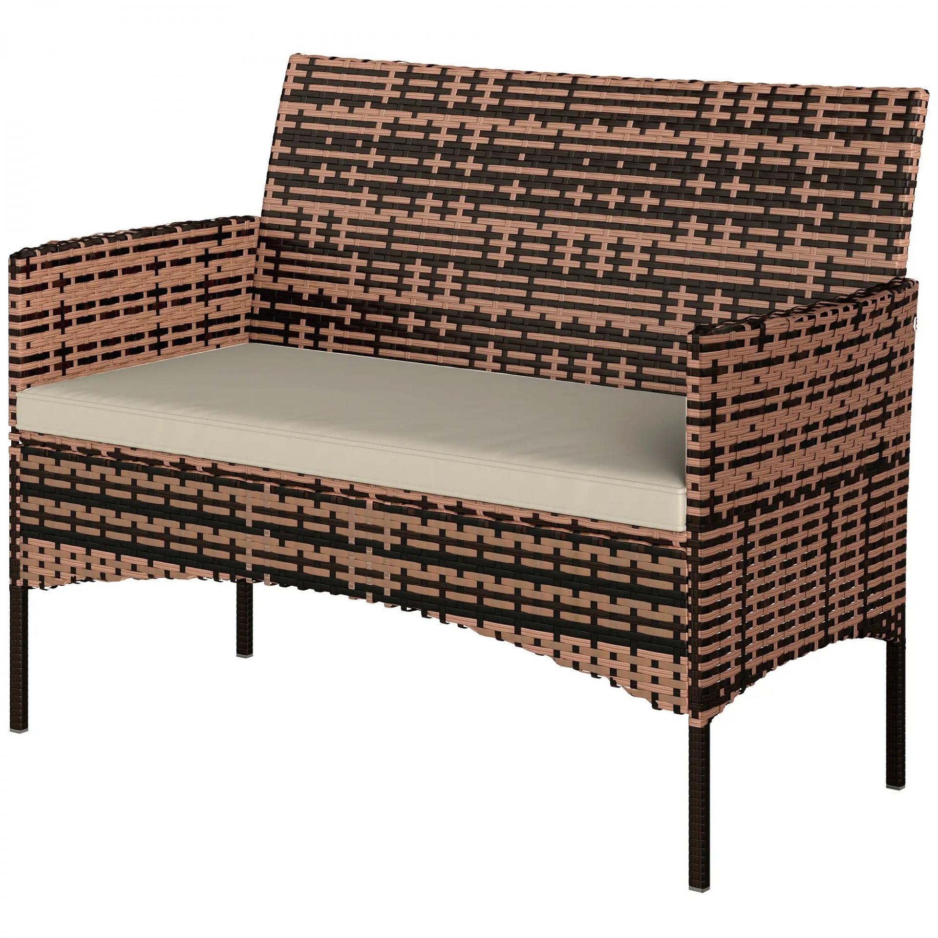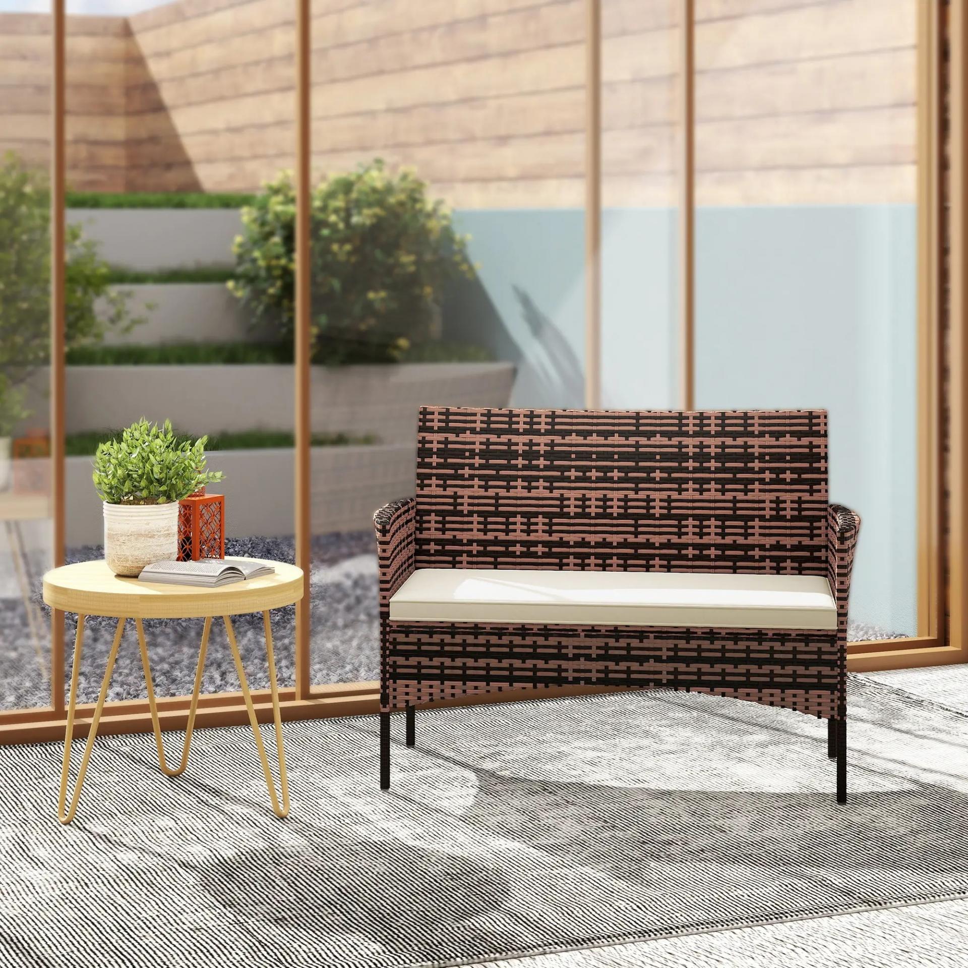 Sofá Exterior de Ratán de 2 Plazas Sofá Exterior de Jardín con Cojín Lavable Estructura de Acero para Balcón Caqui