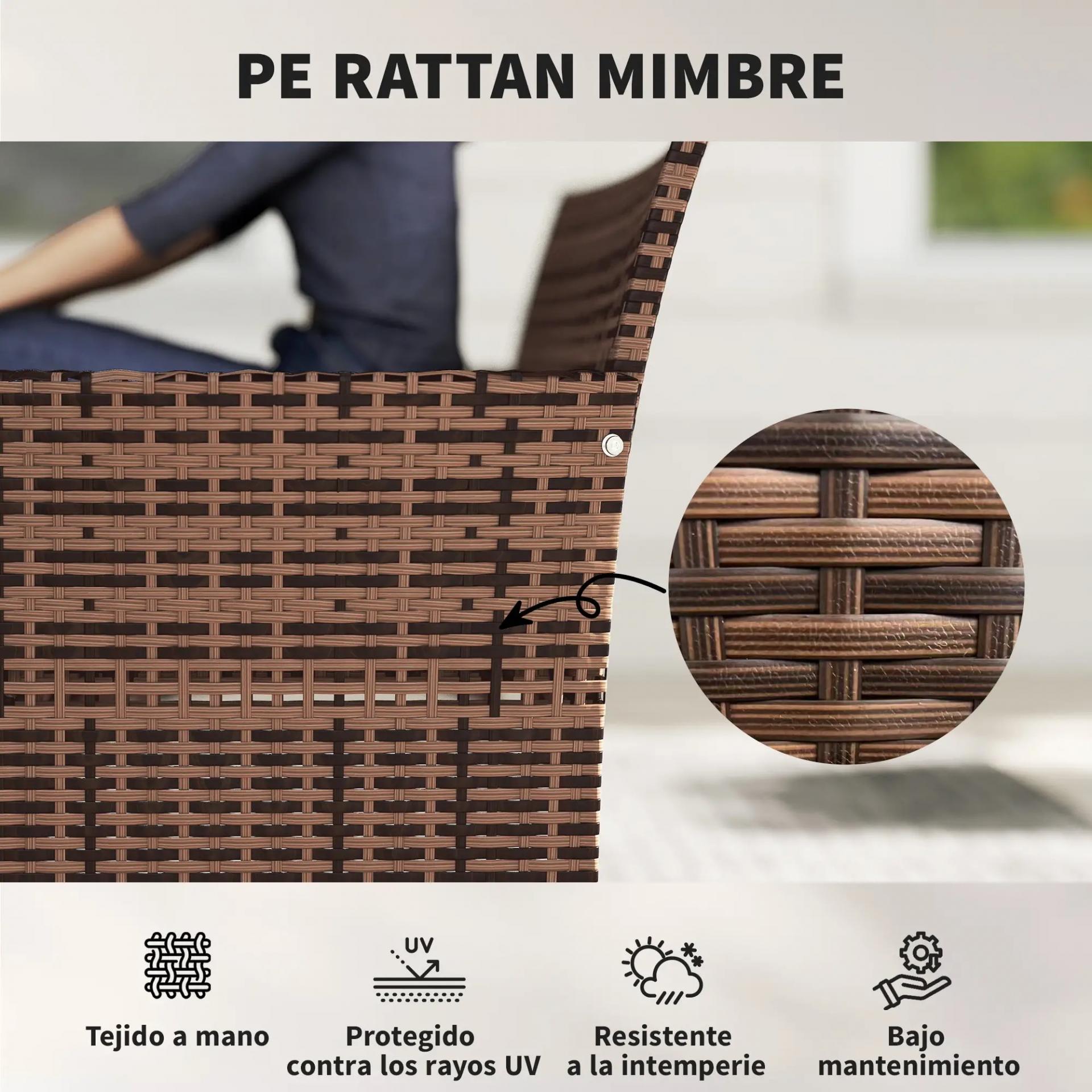 - - RESISTENTE AL CLIMA: Diseñado para resistir el exterior, este sofá de jardín cuenta con un marco de acero con recubrimiento en polvo que asegura una estructura fuerte y duradera, y el ratán PE envuelto lo protege del desgaste ligero y la decoloración